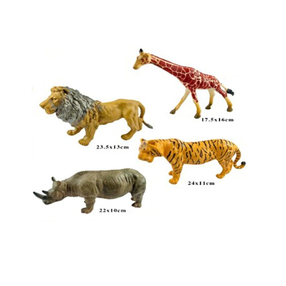 محتويات المجموعة:تشمل حيوانات مثل الأسد، النمر، وحيد القرن، والزرافة.الأبعاد التقريبية:بعض الأبعاد المذكورة هي 17.5x16 سم (للزرافة)23x13 سم (للأسد)،24x11 سم (للنمر)،22x10 سم (لوحيد القرن).الاستخدام:مناسبة للعب وتنمية خيال الأطفال.