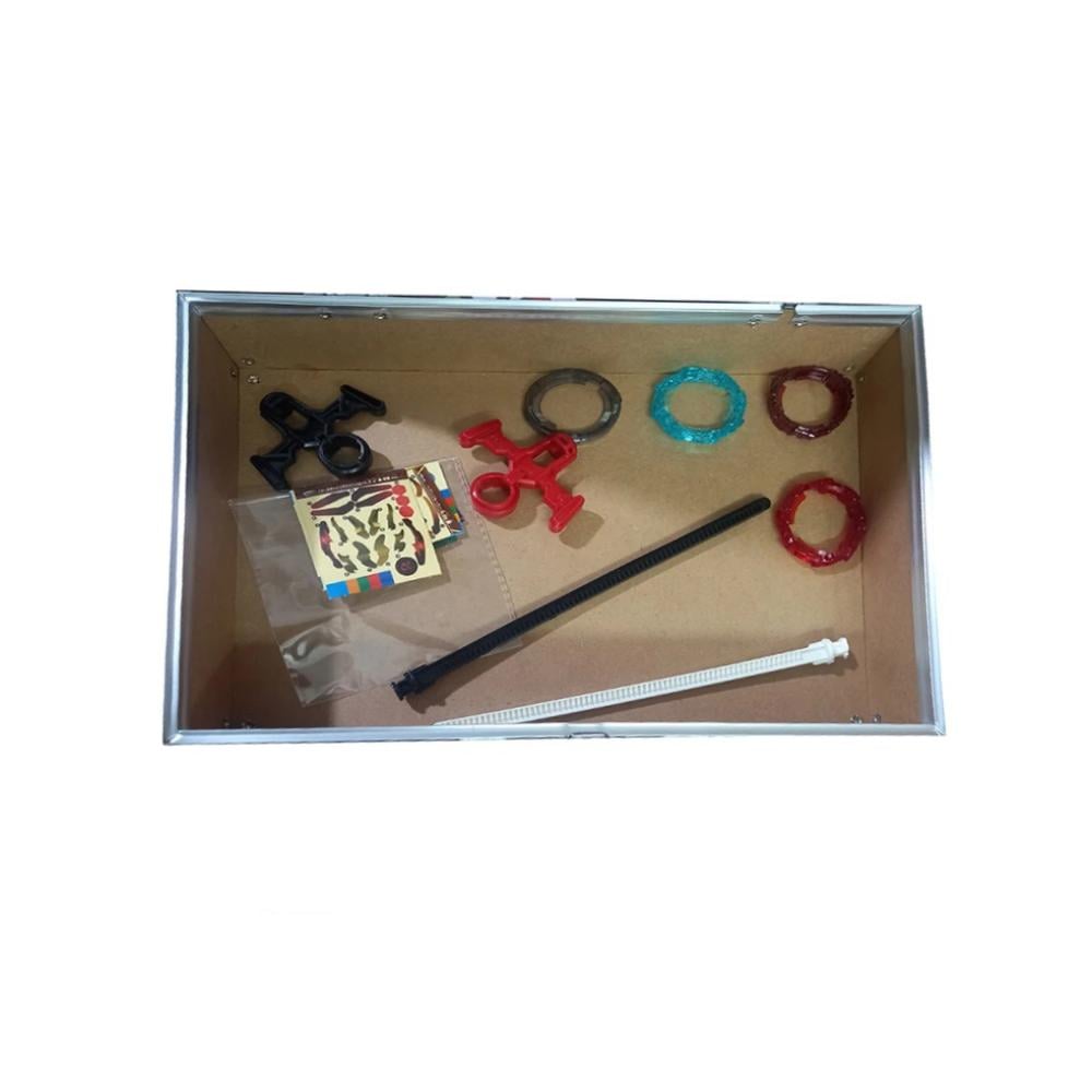 - المحتويات: تأتي المجموعة في حقيبة معدنية تحتوي على بلابل وإكسسوارات مدمجة، بالإضافة إلى مقابض للإطلاق.