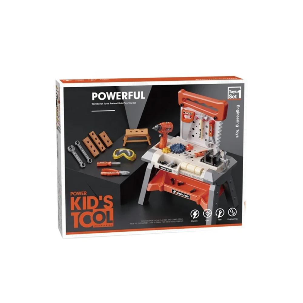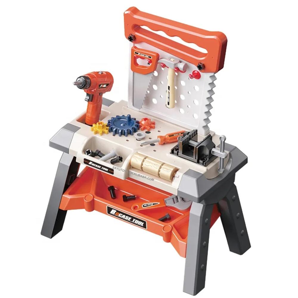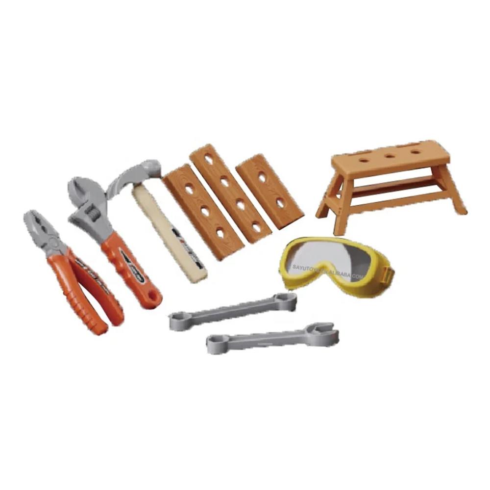 مثل الأداة الحقيقية. تتضمن المجموعة مثقابًا ومنشارًا ومطرقة، بالإضافة إلى أدوات