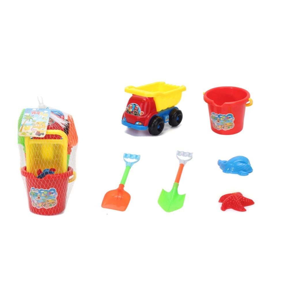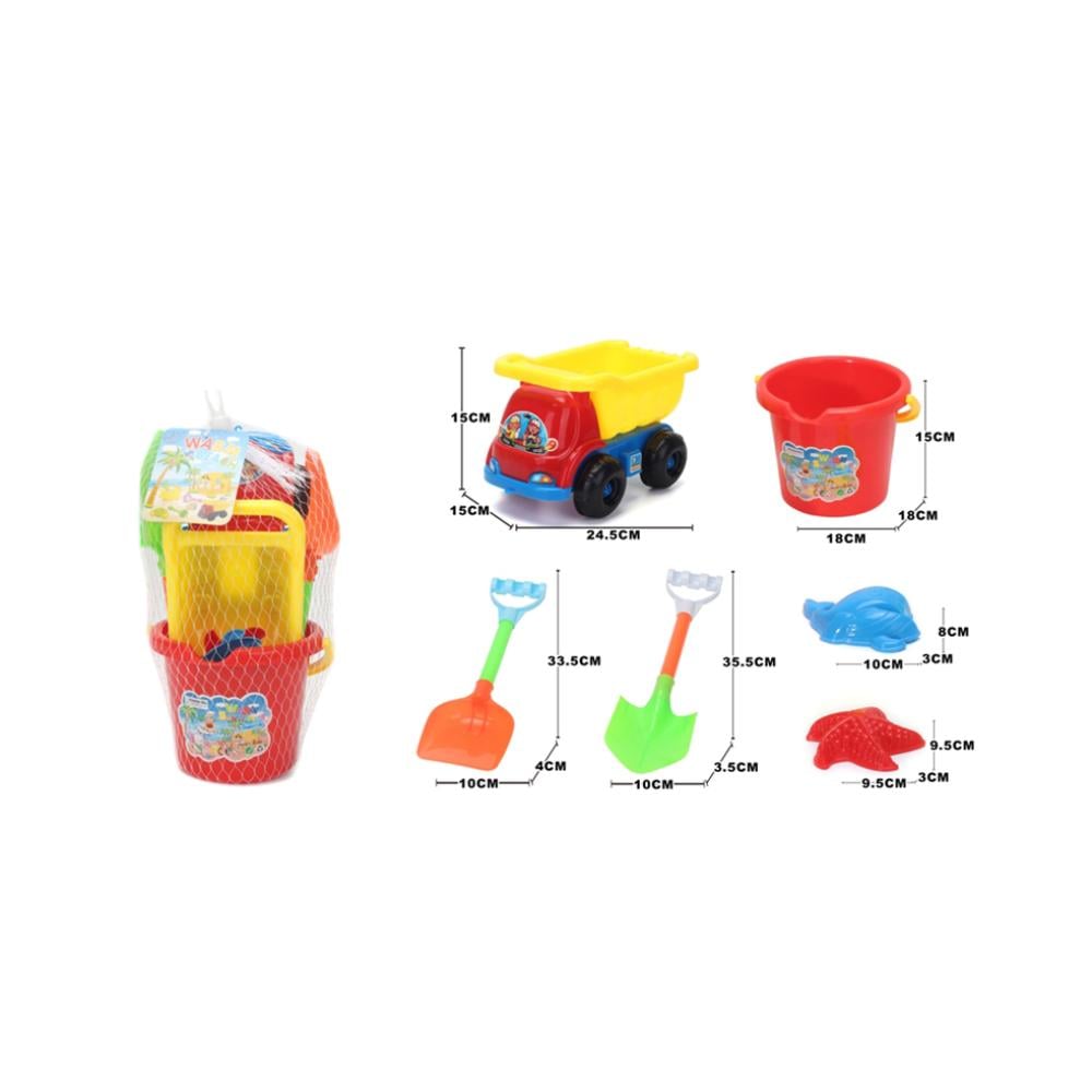 طقم اداوت الشاطئ البلاستيكية الملونة يحتوي على كل ما يحتاجه