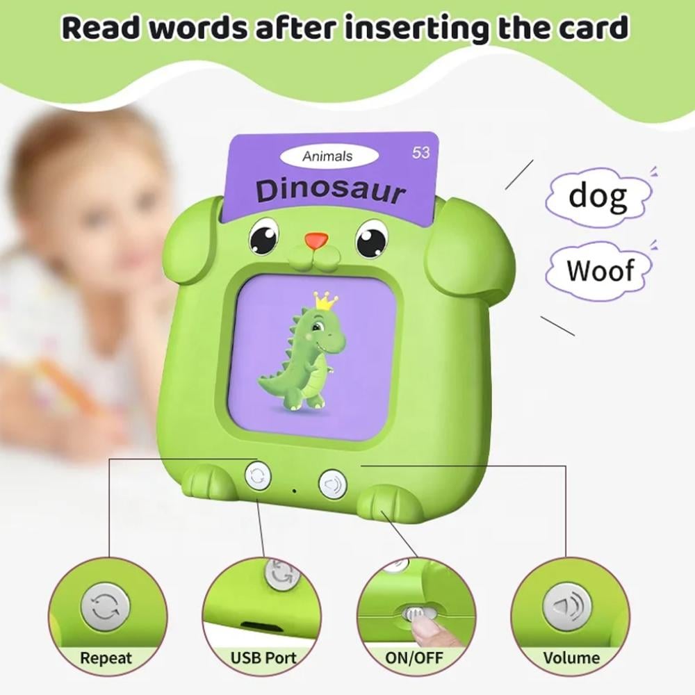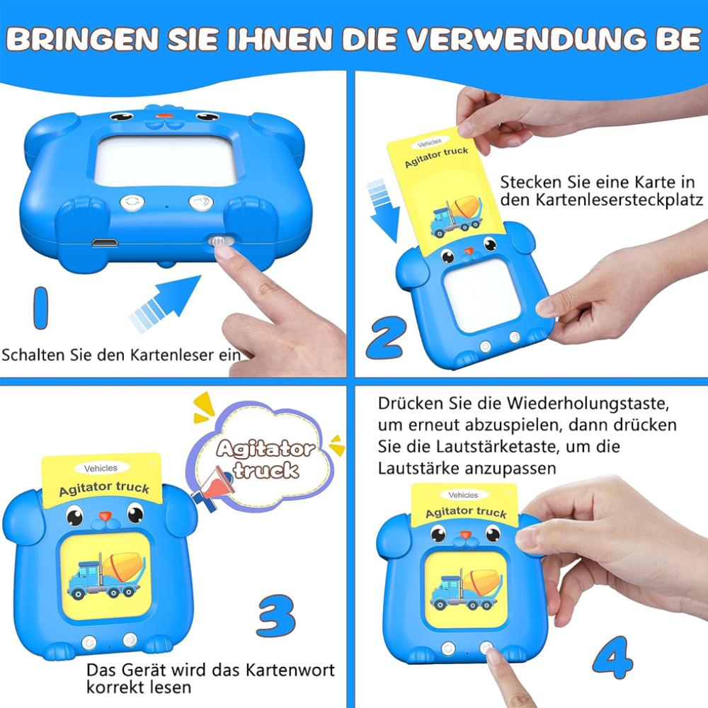 سهل الاستخدام، قم بتشغيل المفتاح، وأدخل البطاقة في فتحة البطاقة، وسيصدر قارئ البطاقات صوتاً. مع وظيفة دورة بزر واحد، يمكنك تكرار القراءة والتعلم دون الحاجة إلى إعادة إدخال البطاقات. تساعد طريقة التعلم التفاعلية هذه الأطفال على تعميق فهمهم للكلمات واللغة وتحسين دقة النطق.