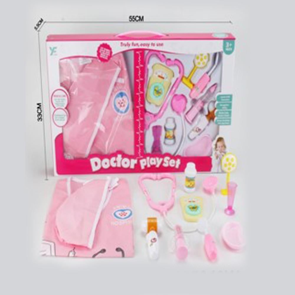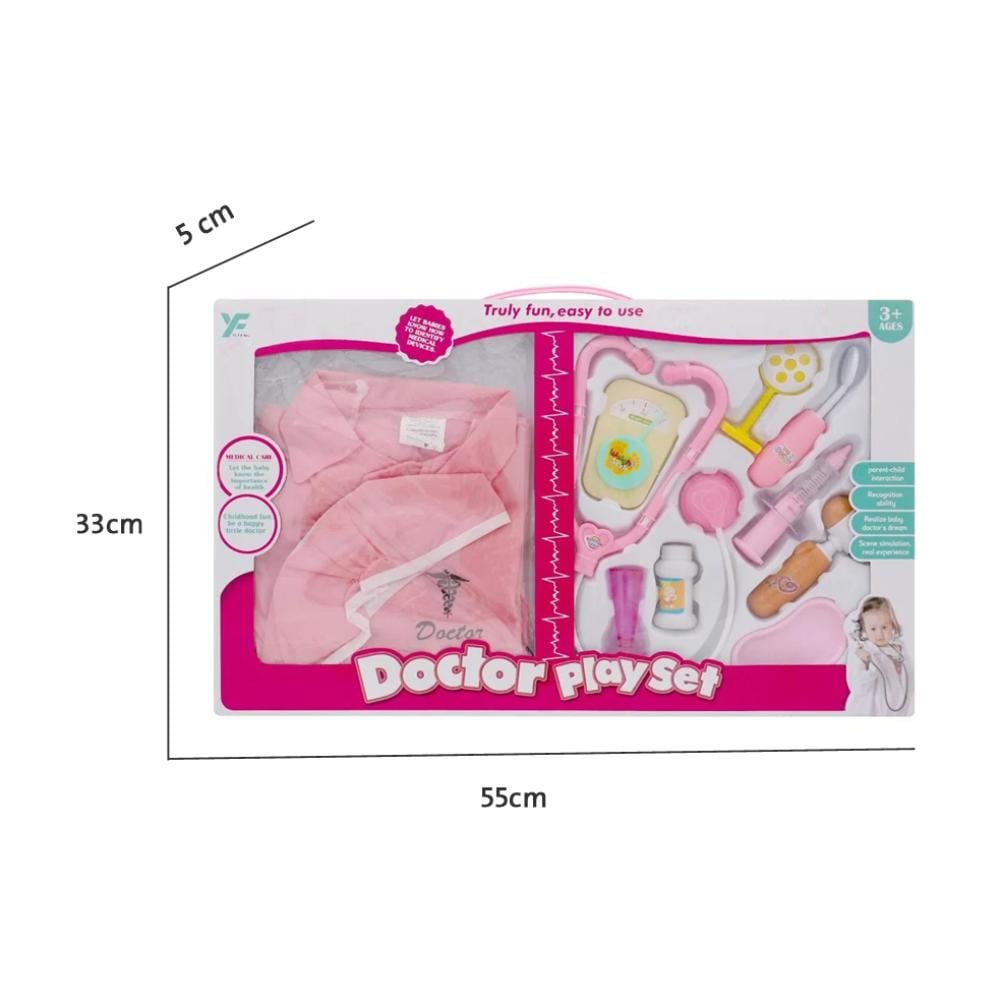أجزاء المجموعة مصنوعة من البلاستيك الآمن. يشمل: - سماعة الطبيب - ثوب الطبيب - المطرقة - المحقنة