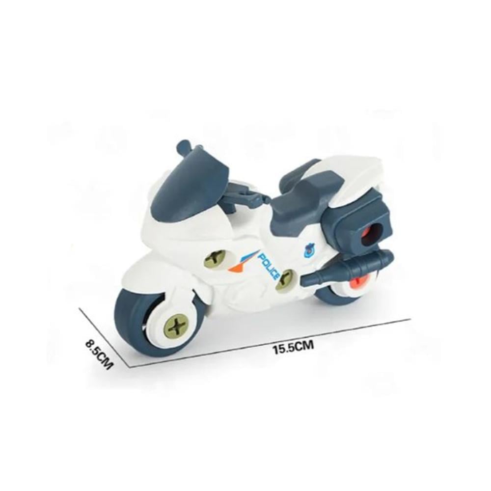 اصنع دراجة نارية للشرطة بأجزاء وتصميم واقعي. تتضمن مفك براغي ومسامير بلاستيكية لسهولة التركيب.