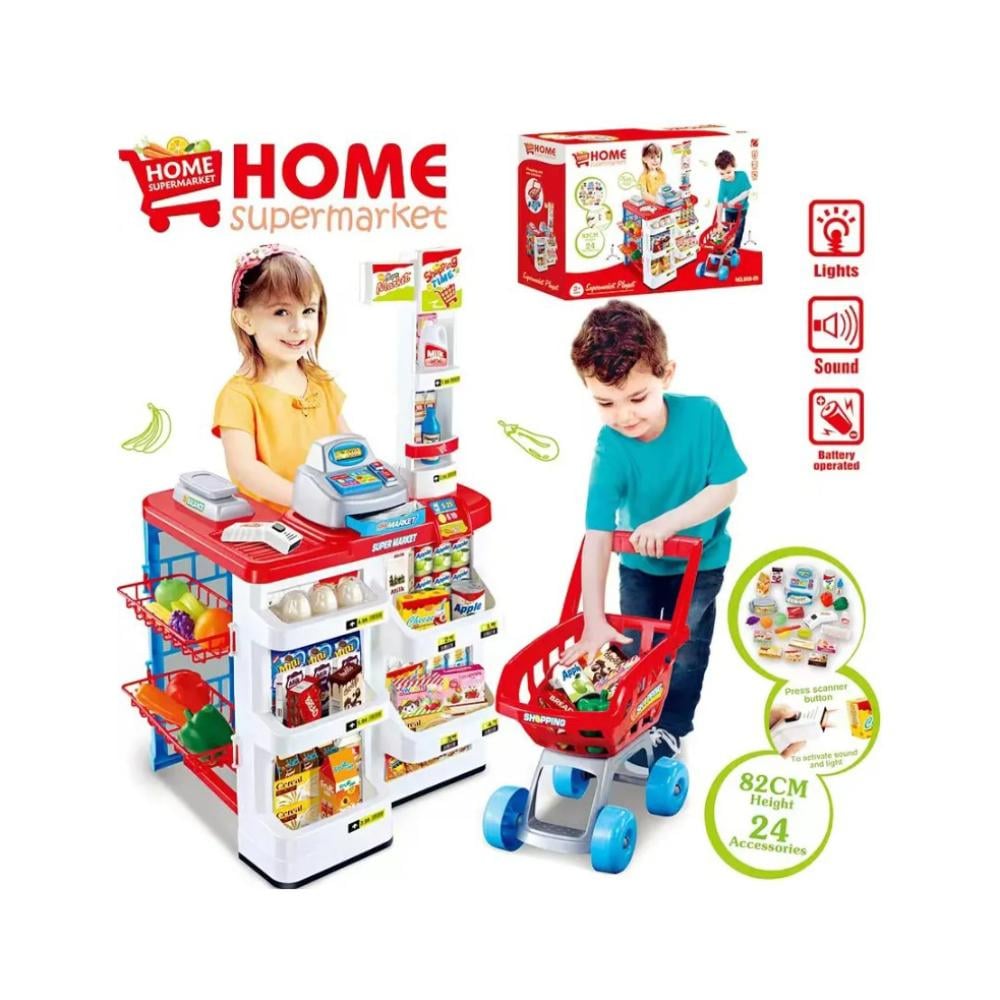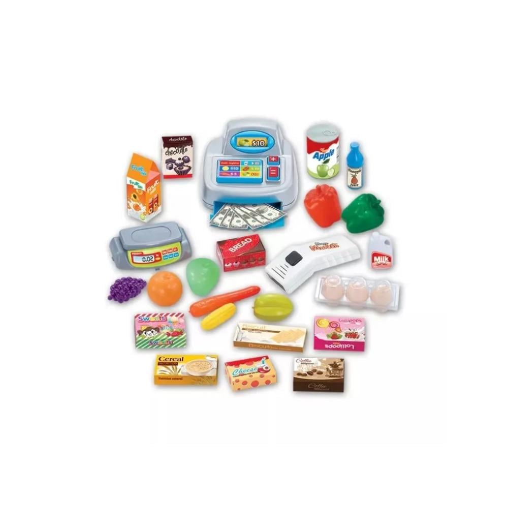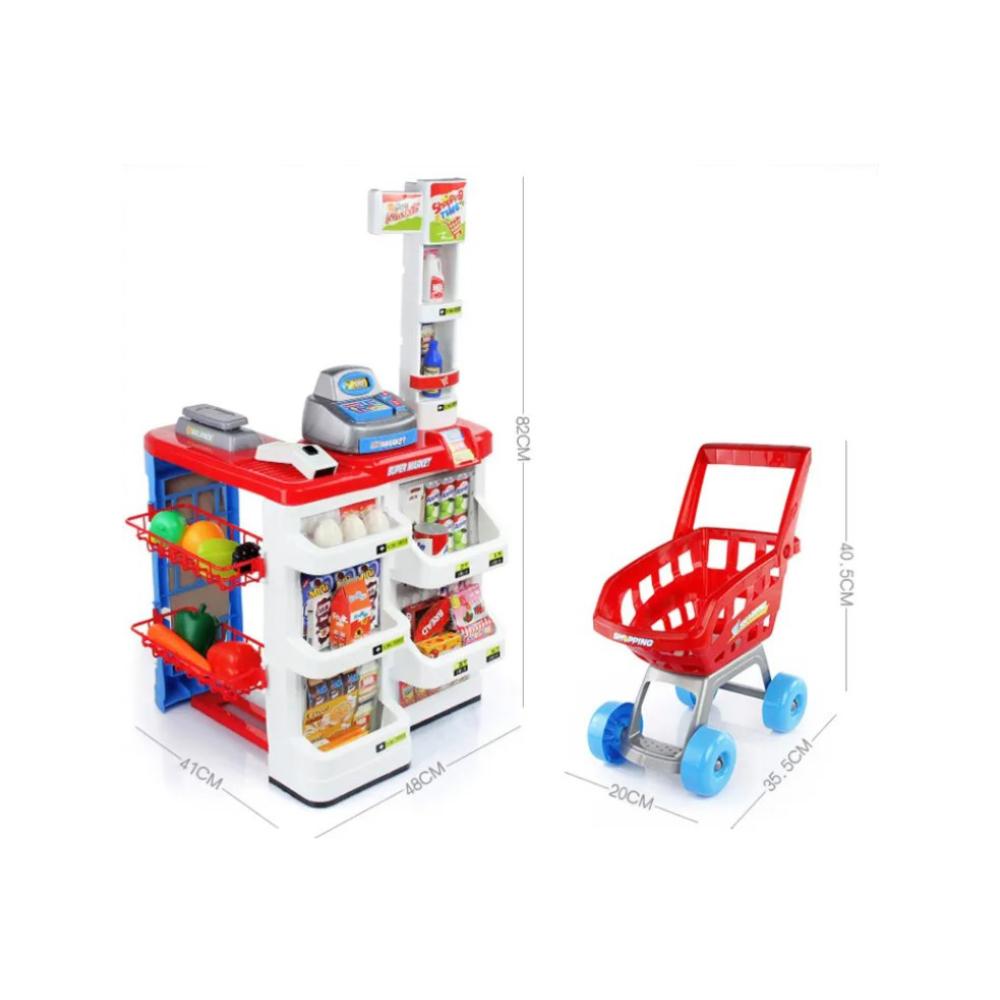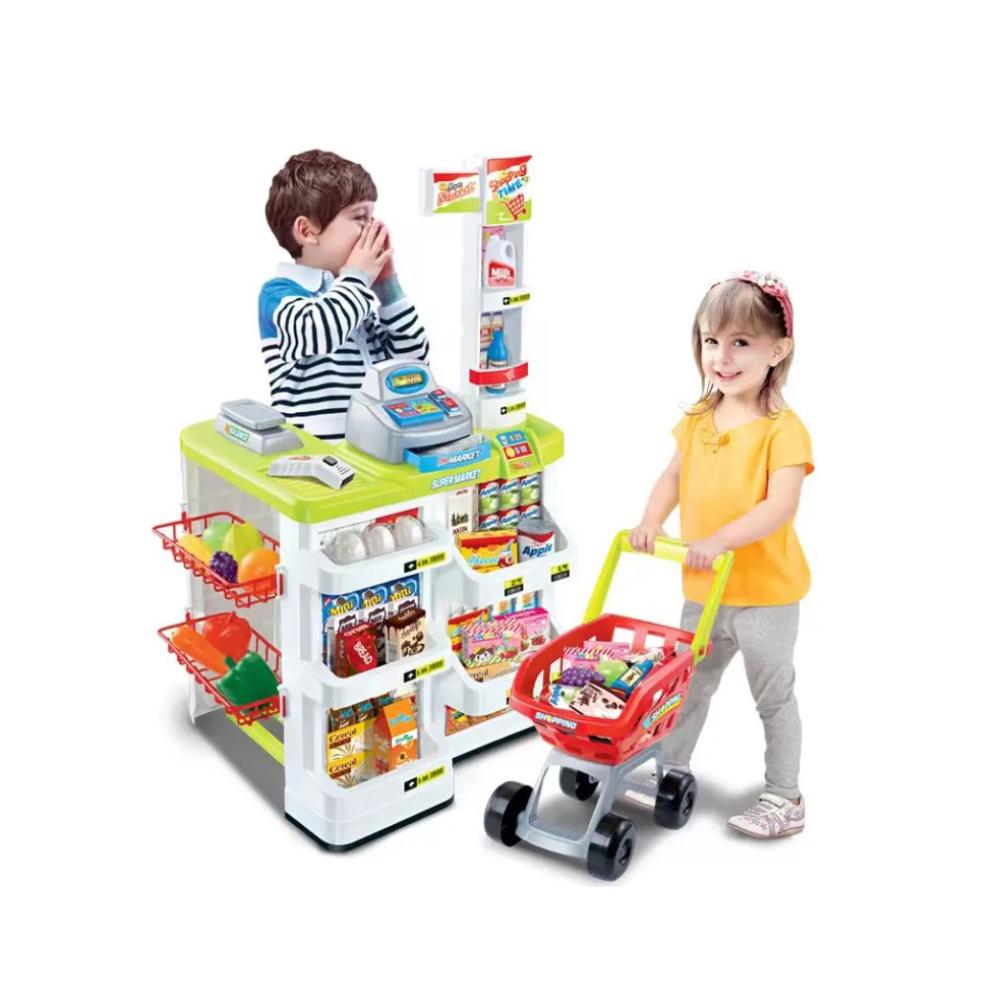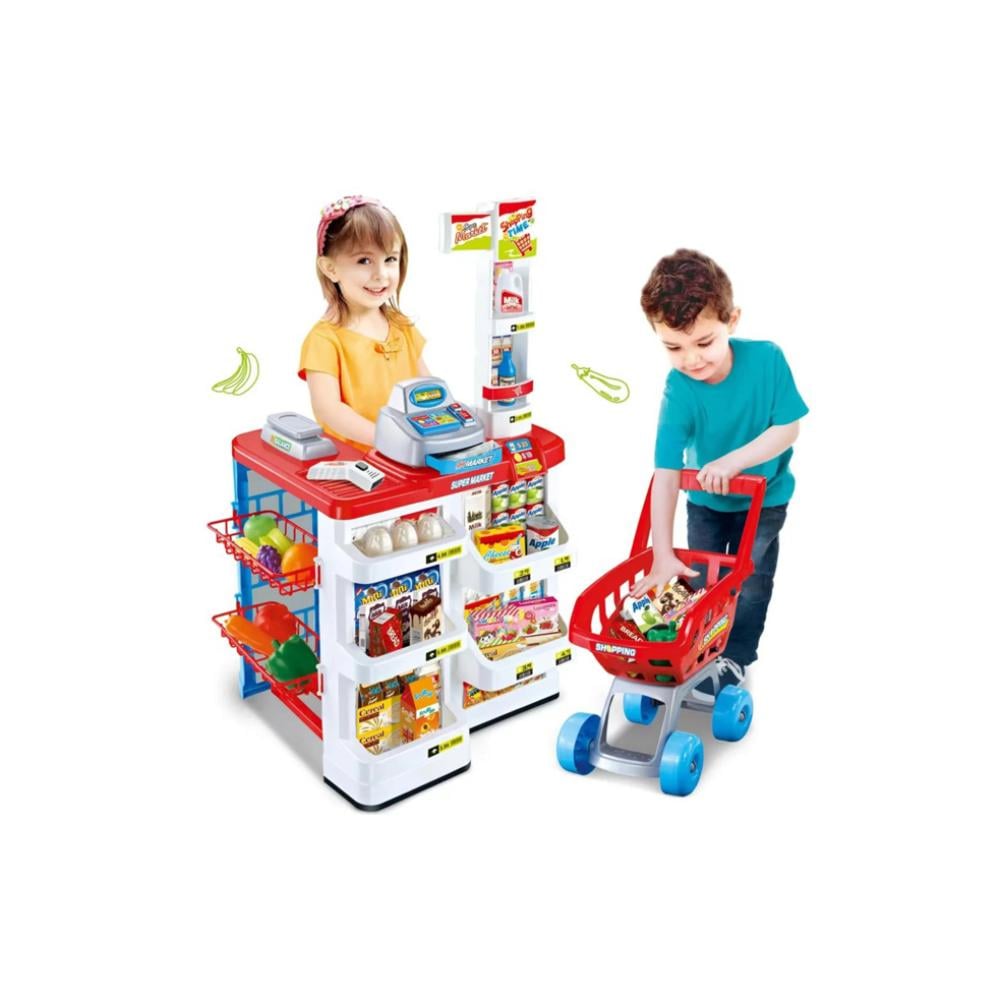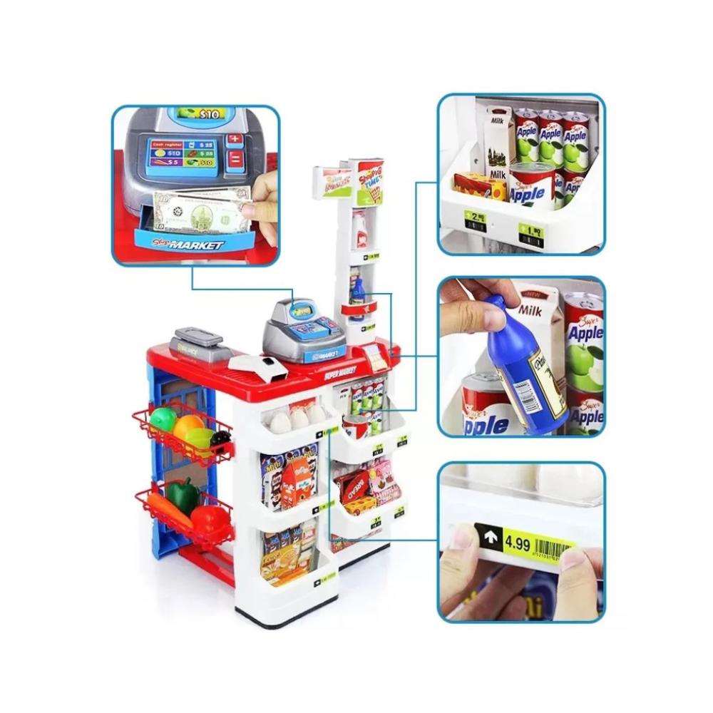 مع رفوف، وصندوق دفع، وثلاجة، وسلة تسوق، بالإضافة إلى ملحقات (22 قطعة).