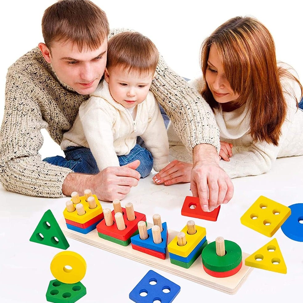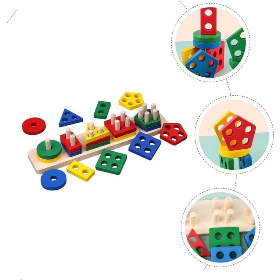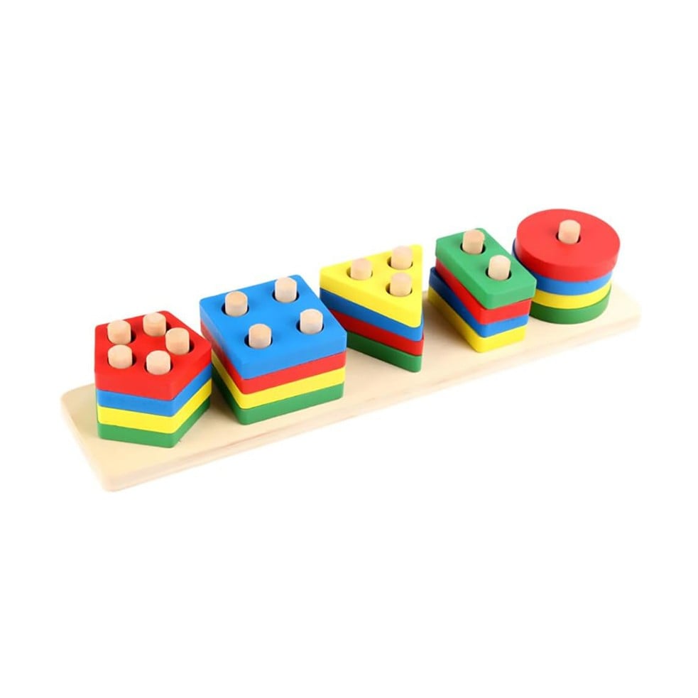 تحتوي أحجية الفرز والتكديس الخشبية هذه