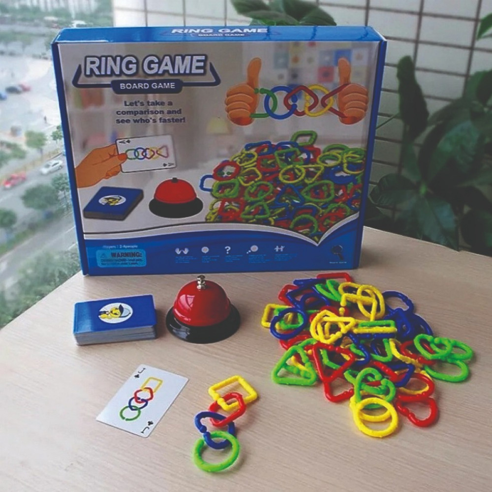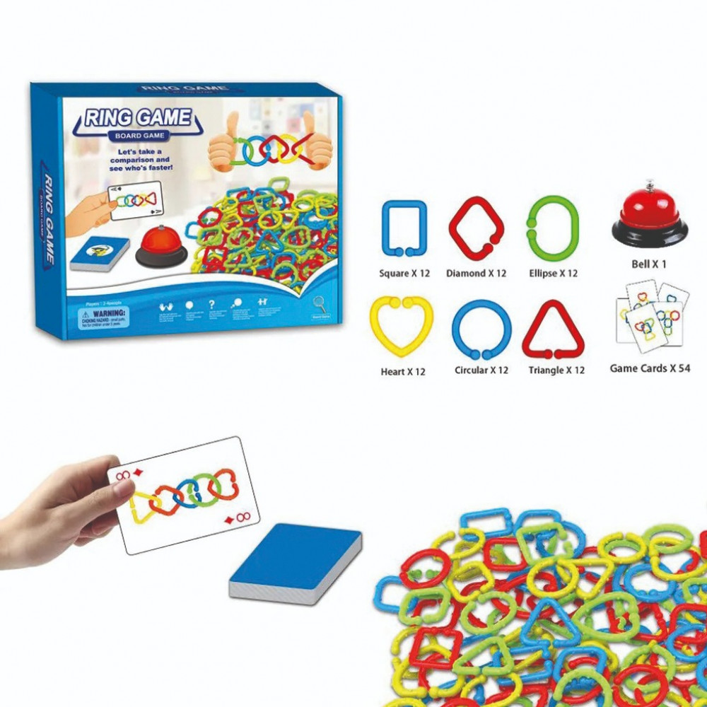 لعبة لوحية تفاعلية لتنمية الذكاء للأطفــــال والبالغين مكونة من 72 قطعة، لعبة لوحية لتنمية الذكاء، العمر الموصى به: 6 سنوات فما فوق. لعبة لوحية مذهلة من الســــرعة وخفة الحـــــركة والتركيز: لعبة سبيد ماتـش رينجز هي اللعبة الجديدة الممتعة التـــــي تجمع بين مفهوم تكديس الأكواب بسـرعة مع مطابقة الألوان والأشكال. قم بتوصيل الحلقات لمطابقة اللون والأشكال بشــكل صحيح في بطاقات اللعبة، واطرق الجـــــرس أولا، وأنت تكسب البطاقة، اللاعب الذي لديه معظم البطــــاقات هـــــو بطل ســـبيد ماتش رينجز. لعبة بطاقات ممتعة للغاية لجـــــميع أفراد العائلة: لعبة الحلقات هـــذه هي لعبة سريعة ومباراة مصممة بشكل جيد للغــاية لجميع الأعمار - حتى البالغين - رائعة بشكل خاص عندما تحاول مجموعة واسعة من الأعمار اختيار لعبة للعب والتنافس معا. مواد عالية الجودة وآمنة: جميع الحلقات ال72 مصنوعة من بلاستيك ABS عالي الجودة وغير الضار والآمن للأطفال، كما أنها قوية ومتينة. هدية مثالية للأطفال بعمـــر 5 سنوات فما فوق: لعبة رينج هي لعبــــــــــــــة المهارات والسرعة المثالية للأطفال مــــــــن مختلف الأعمار! رائعة لبناء قدرة الجميع على التنسيق بين اليد والعين ومرونة اليد والقدرة المعرفية والذاكرة والعقلية.