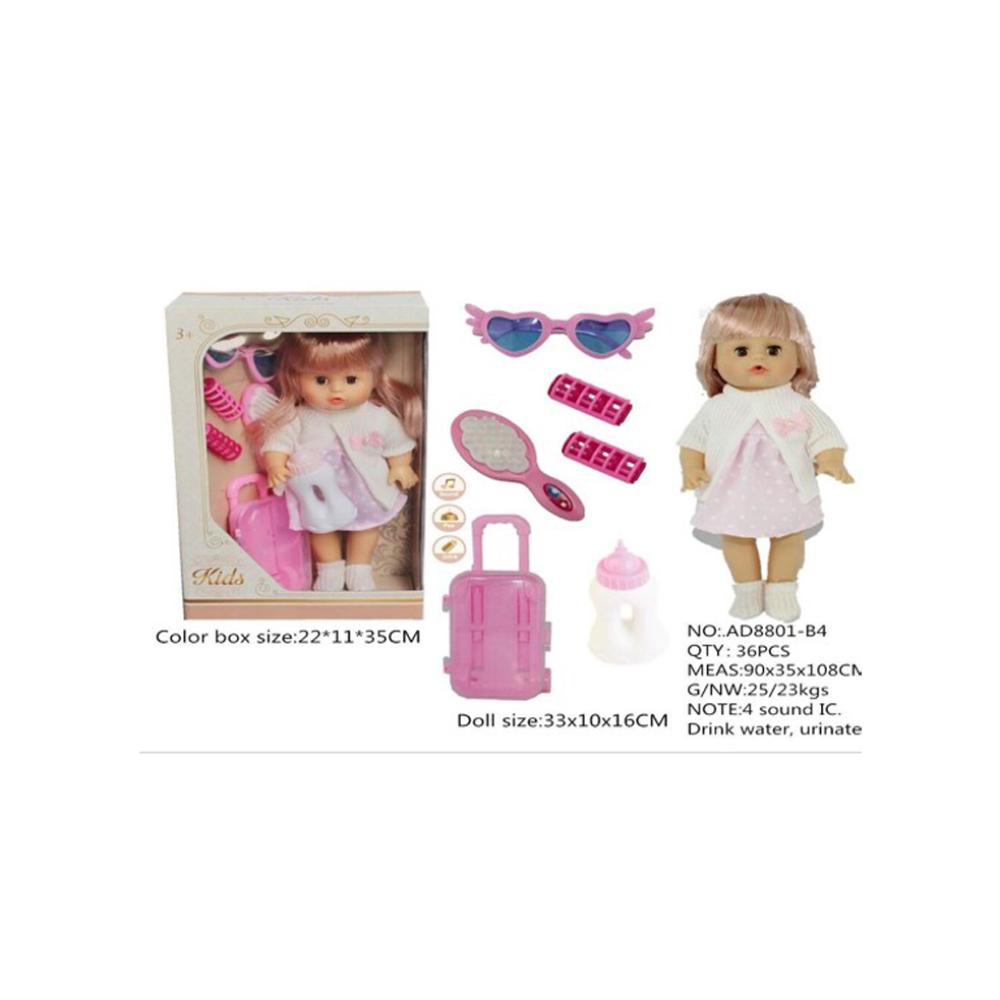 عند مداعبة البطن، تصدر الدمية أصواتاً مختلفة.