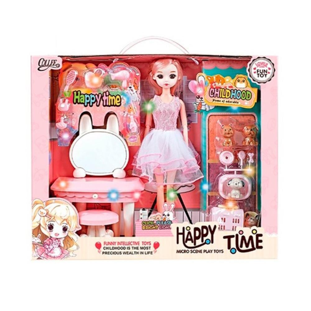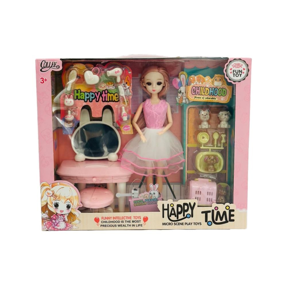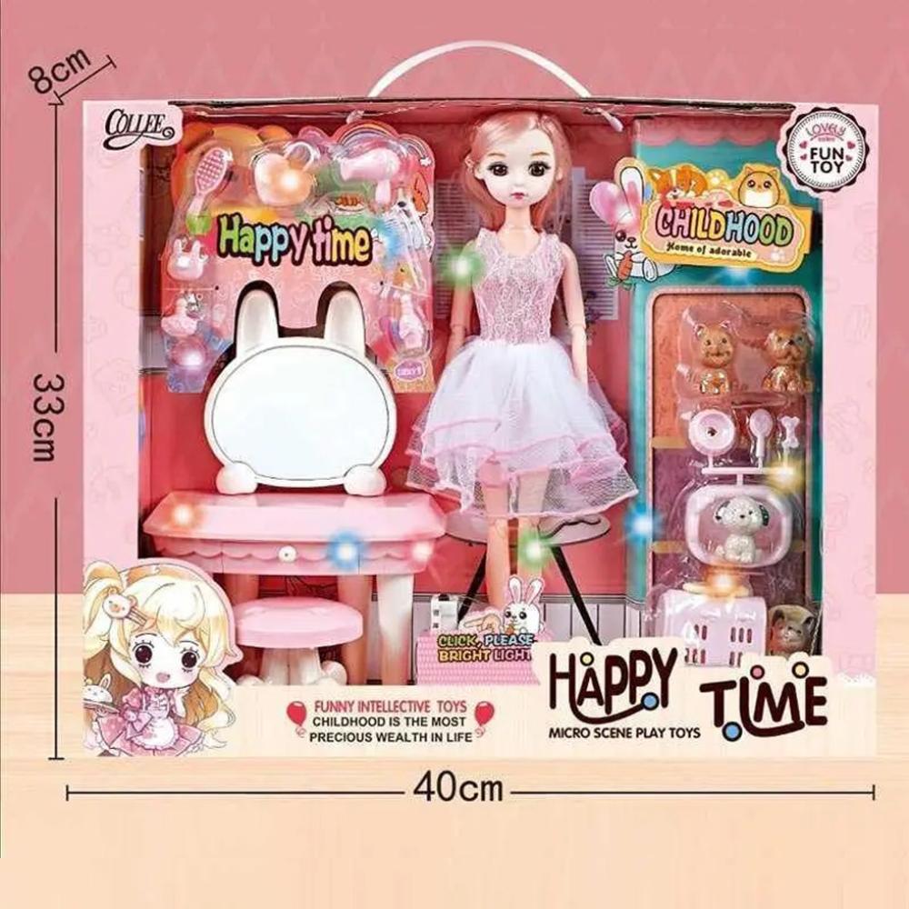 نقدم لكم دمية رائعة بمفاصل يبلغ ارتفاعها 30 سم. تشتمل المجموعة على أثاث أنيق ومجموعة متنوعة