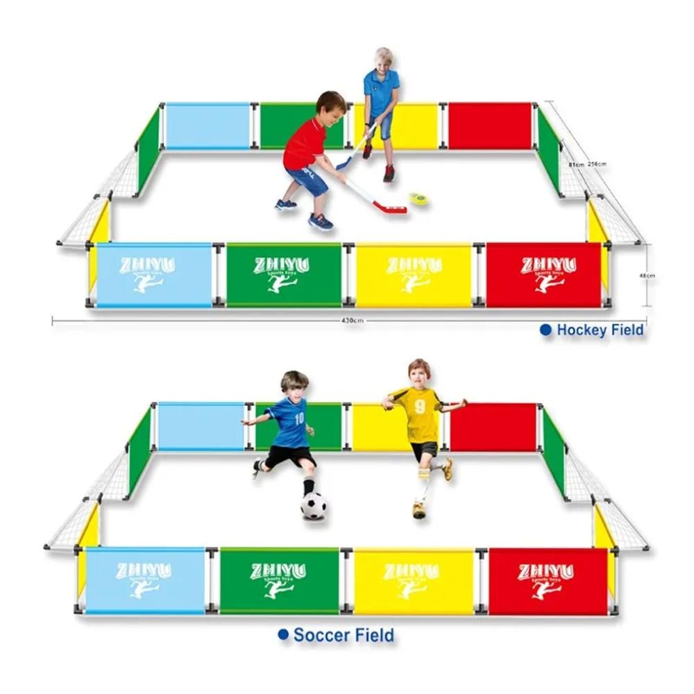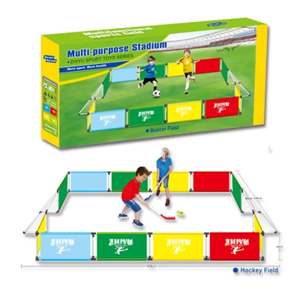 تجمع لعبة الملعب متعددة الأغراض متعددة الأغراض 2 في 1 بين كرة القدم للأطفال + ملعب الهوكي ويسهل حملها.