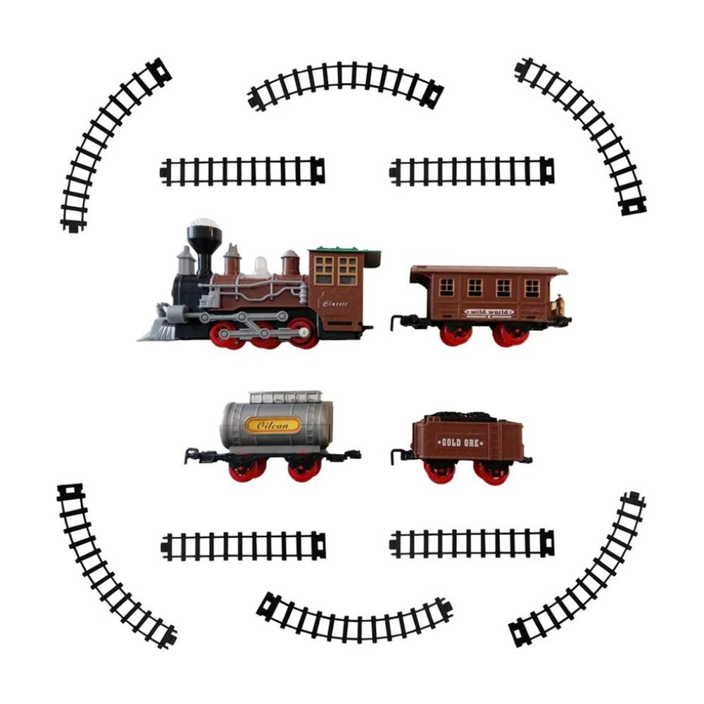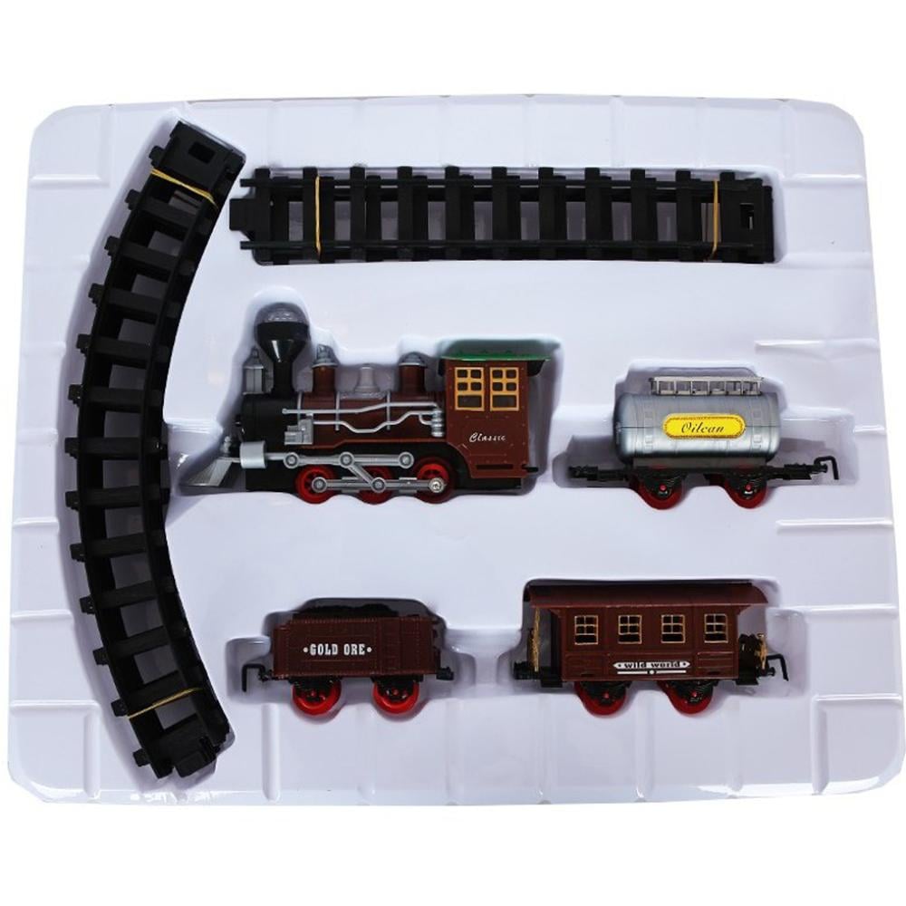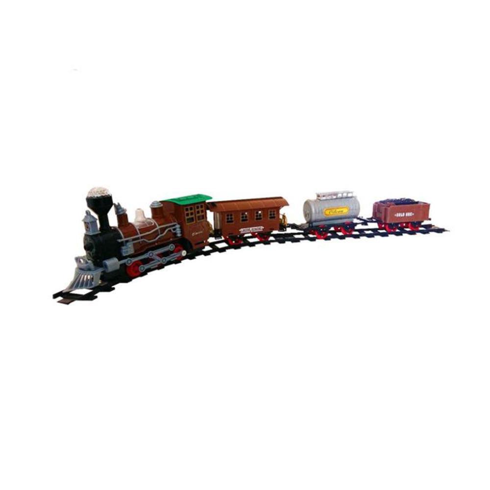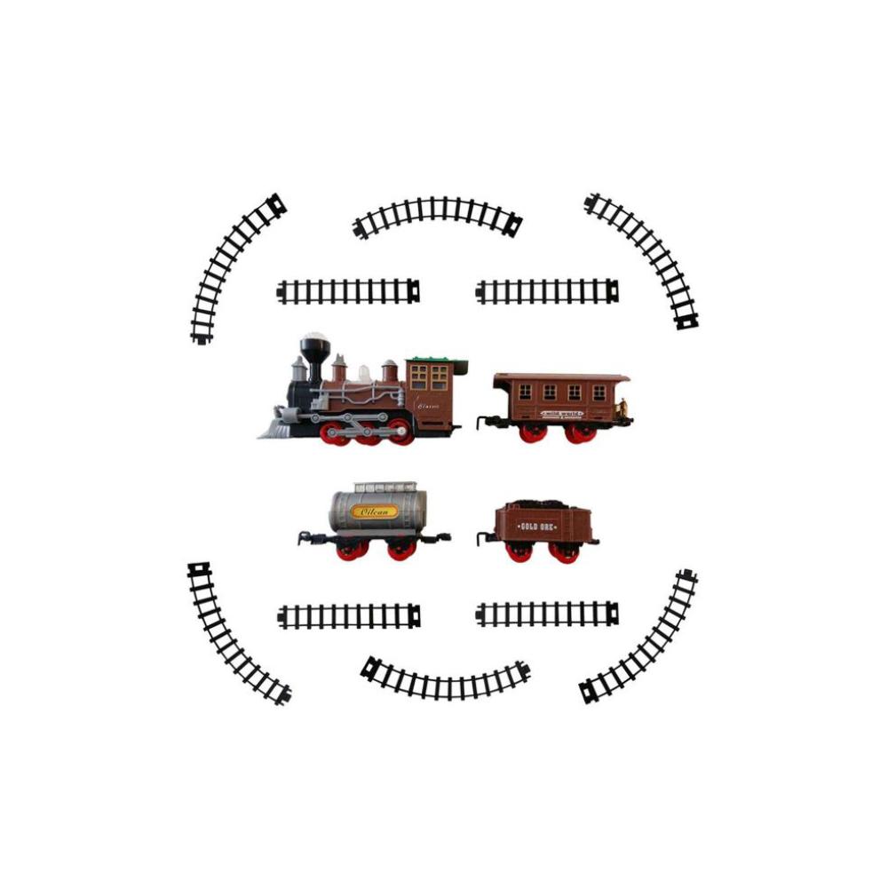 يحتوي هذا القطار الكلاسيكي على قاطرة وعربة ركاب وعربتين لنقل البضائع والفحم.