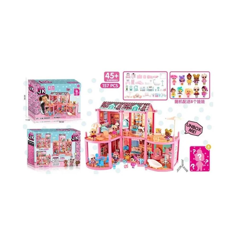 منزل من طابقين مع شرفة أرضية وتراسين صيفيين سيمنح الفتاة الكثير من فرص اللعب. تم تأثيث جميع الغرف بأثاث ذو طابع خاص، وتم تصميم التصميم بطباعة مع لمسة نهائية لامعة على كل جدار.