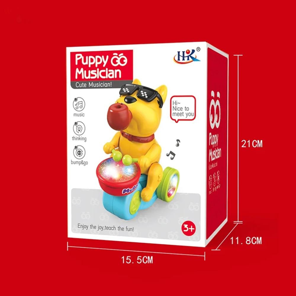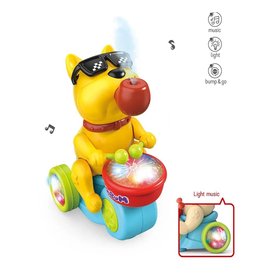 لعب تفاعلي: يتميز هذا التصميم الفريد بجرو يحمل طبلاً على جسمه