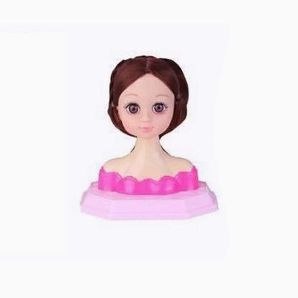 تمثال نصفي لدمية ذات عيون زجاجية وشعر طويل كثيف. تم خياطة رأس الدمية.