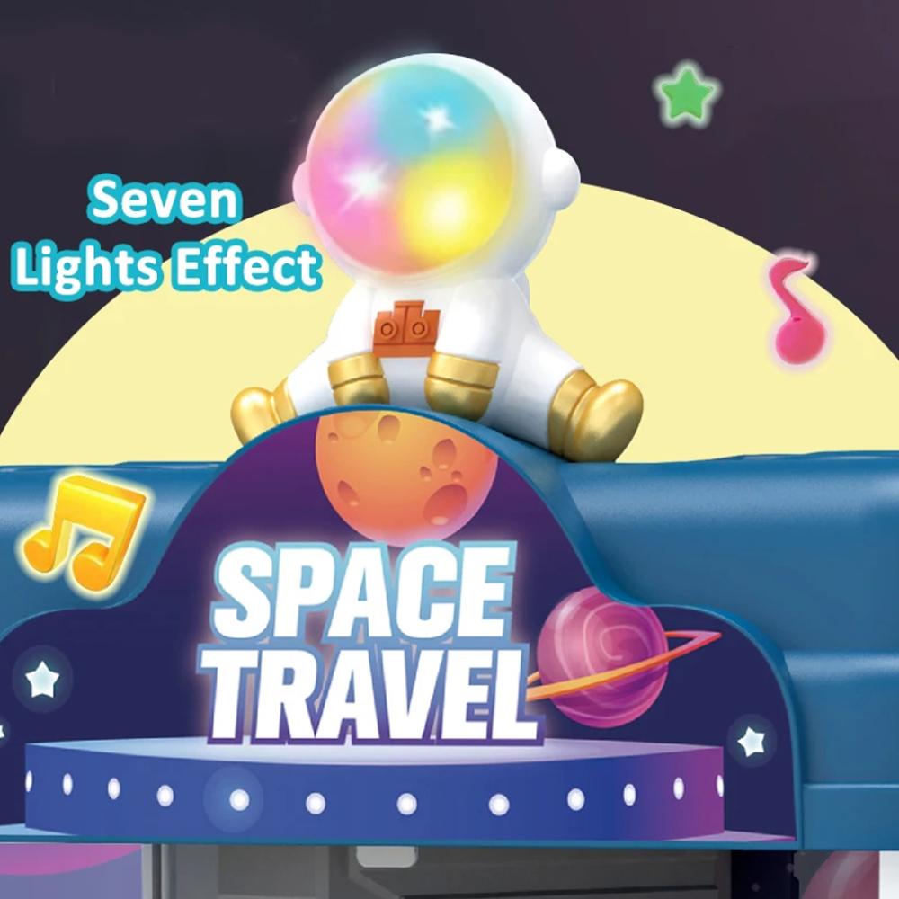 الآلة مجهزة بموسيقى مبهجة يتم تشغيلها في الخلفية مما يخلق جوًا حيويًا وممتعًا.