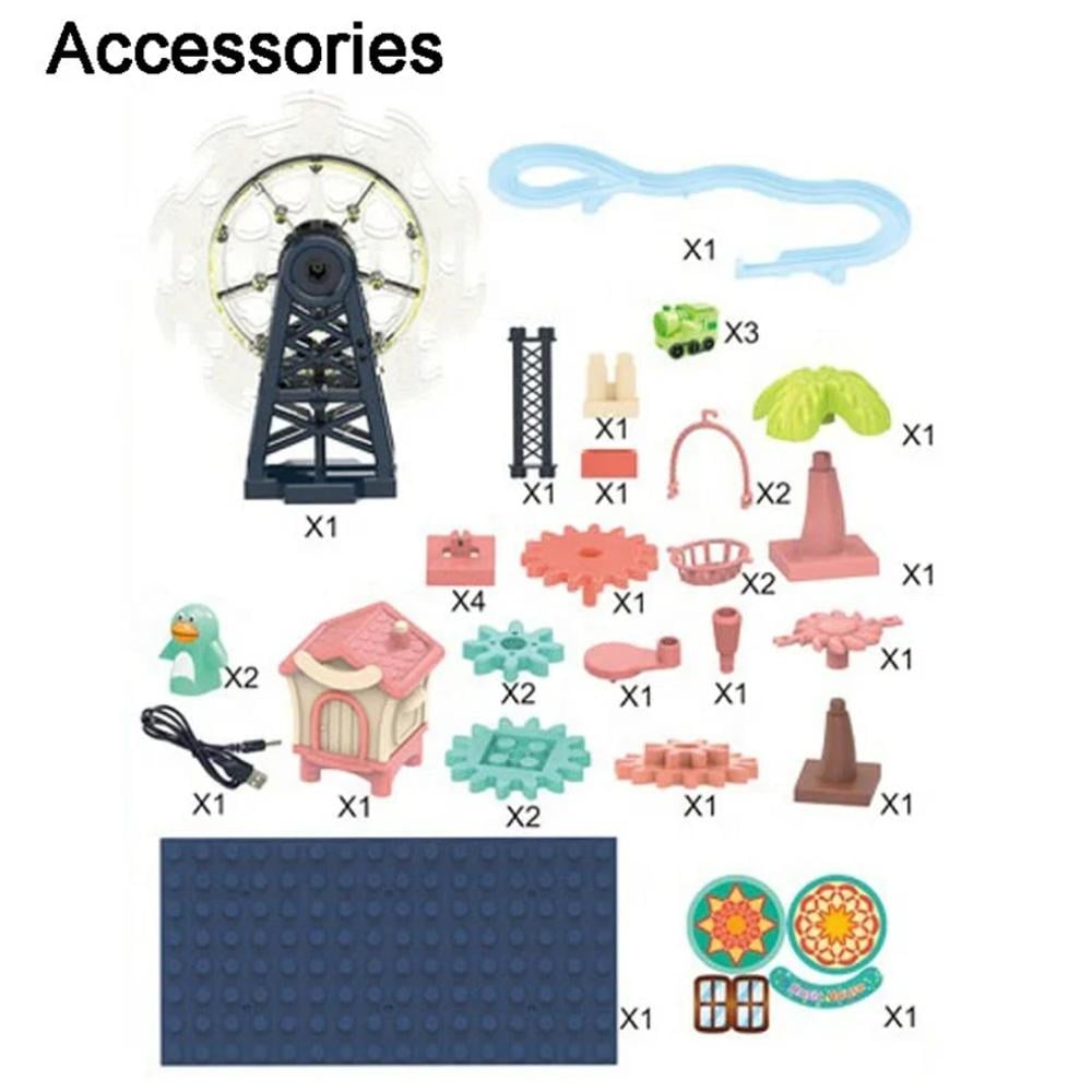 مع مجموعة مسارات بناء مكعبات Time2Play، سيُبدع أطفالك في بناء عجلة فيريس متحركة خاصة بهم مع زحليقة ومنزل موسيقي، ليتعلموا المهارات الحركية ويقضوا وقتًا ممتعًا.