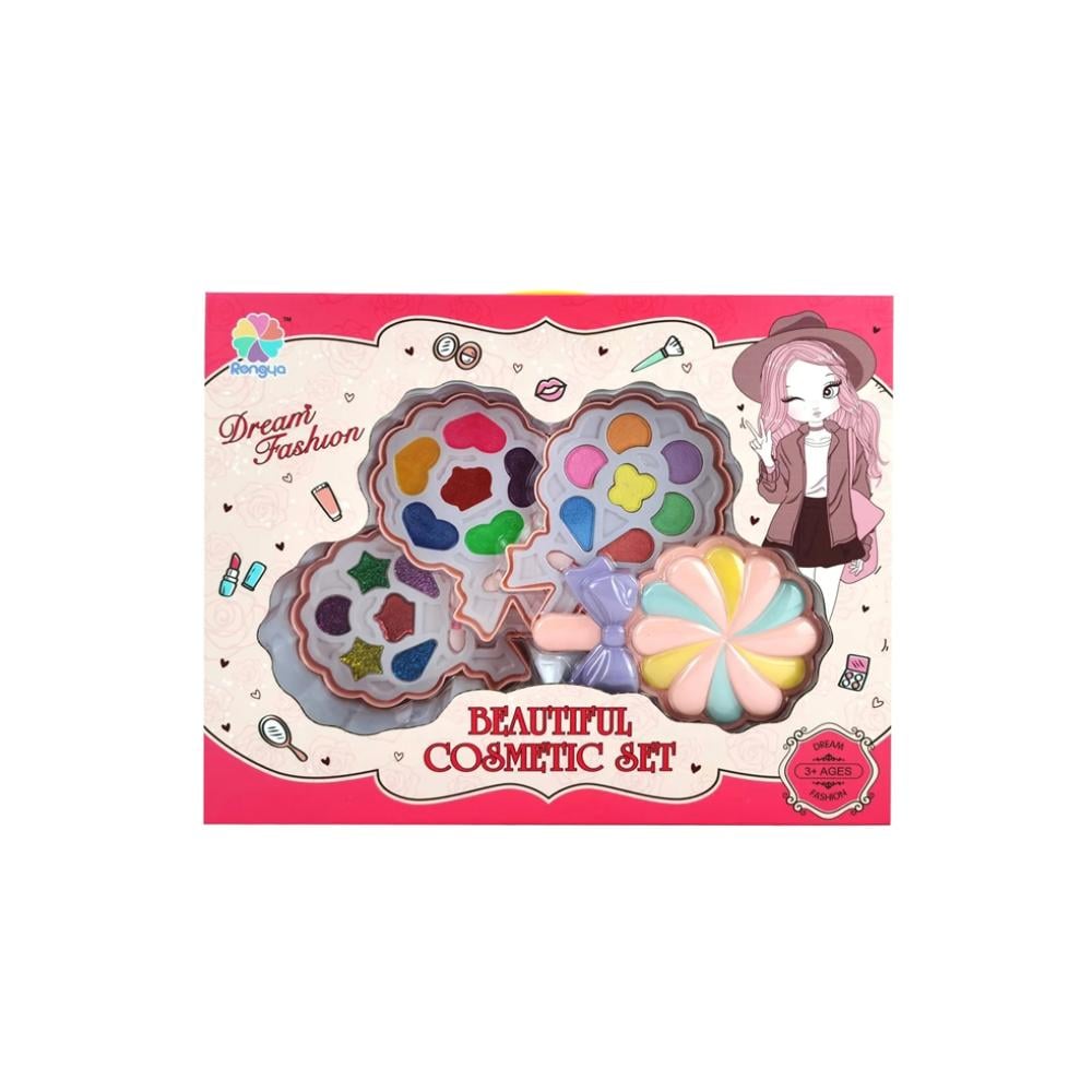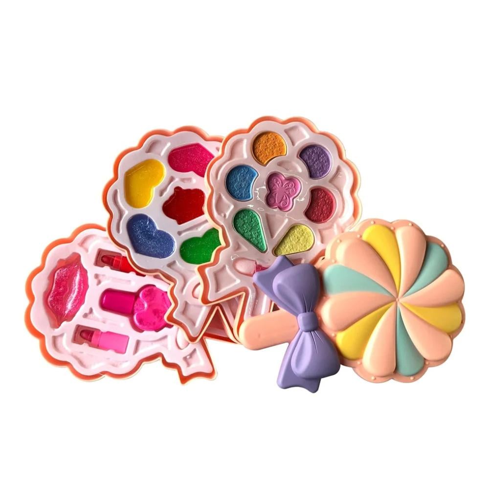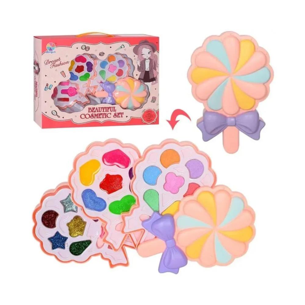 مجموعة مشرقة من مستحضرات التجميل للأطفال. يحتوي على العناصر الأكثر أهمية