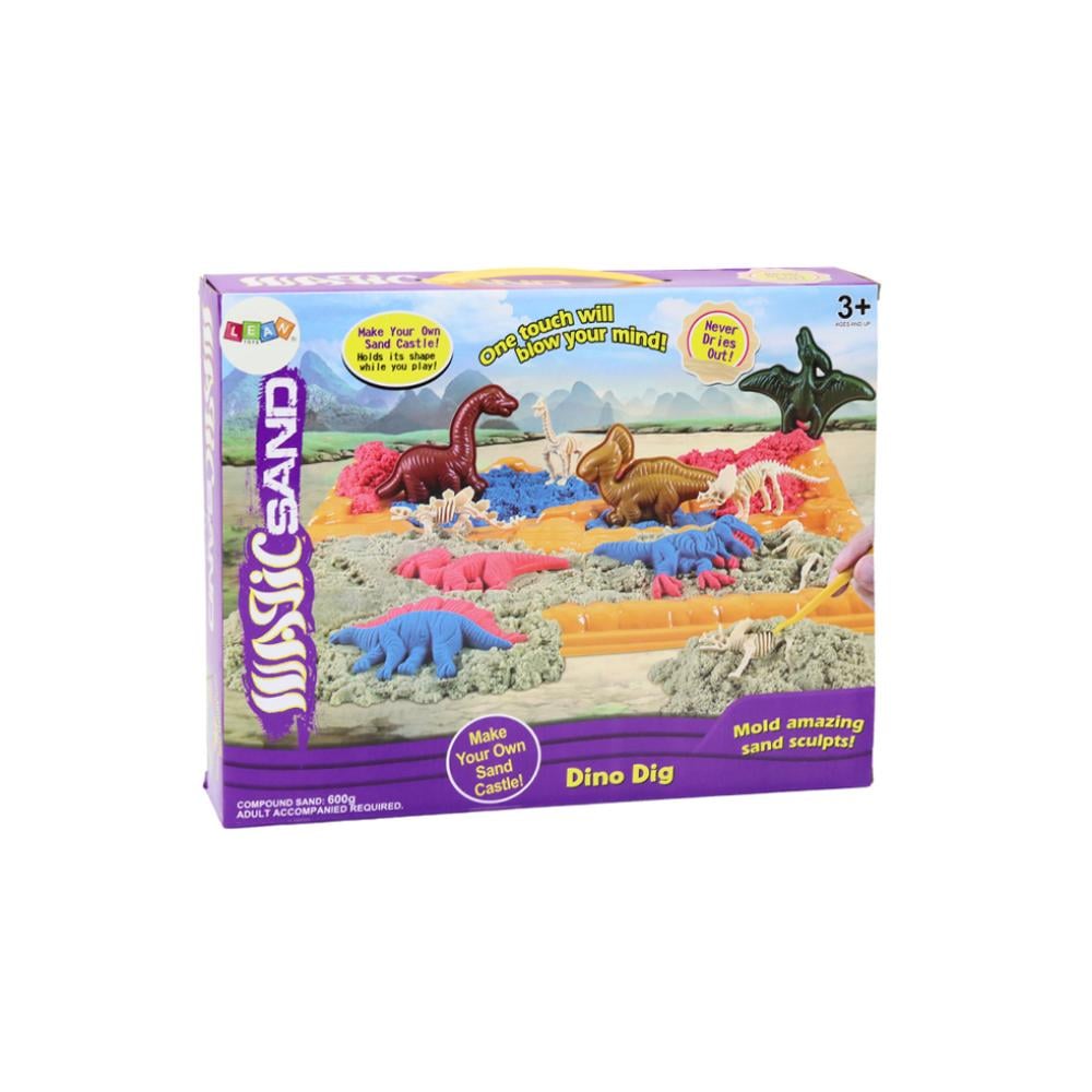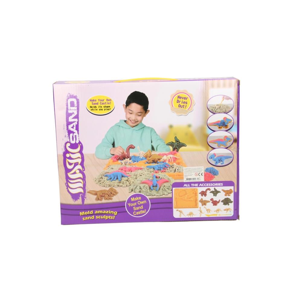 قوالب هياكل عظمية لديناصورات رملية حركية سحرية 6 قطع ديناصورات رملية حركية. تتميز هذه الرمال السحرية بخصائصها غير العادية - بفضل طبيعتها الحركية، تجذب جزيئات الرمل بعضها البعض، مما يسمح لك بإنشاء أشكال مذهلة دون خوف من تفككها. وفي الوقت نفسه، فإنه يحتفظ بمرونته الرائعة، مما يسمح لك بإنشاء حتى الأشكال الأكثر خيالية التي يسيطر عليها خيال طفلك الصغير. إنه ليس ممتعًا فحسب، بل إنه أيضًا طريقة رائعة لتطوير المهارات اليدوية لدى الأطفال. من خلال تشكيل الأشكال المختلفة، يتحسن دقة الحركات لدى طفلك والقدرة على التركيز، كما يتطور لديه الخيال والإبداع. تتيح لك مجموعة الرمال الحركية أيضًا أن تتولى دور عالم آثار صغير يكتشف أحافير الديناصورات. اللوحة الصفراء الكبيرة ذات التجاويف هي القاعدة لإنشاء أشكال مختلفة، في حين تعمل القوالب الستة على شكل ديناصورات مختلفة وهياكل عظمية وملحقات صب على توسيع إمكانيات اللعب والإبداع.