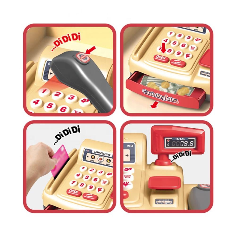 تسجيل نقدي تفاعلي للأطفال للعب في المتجر. بفضل المجموعة ، سيكتسب الأطفال مهارات العلاقات