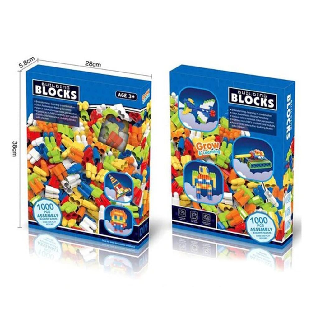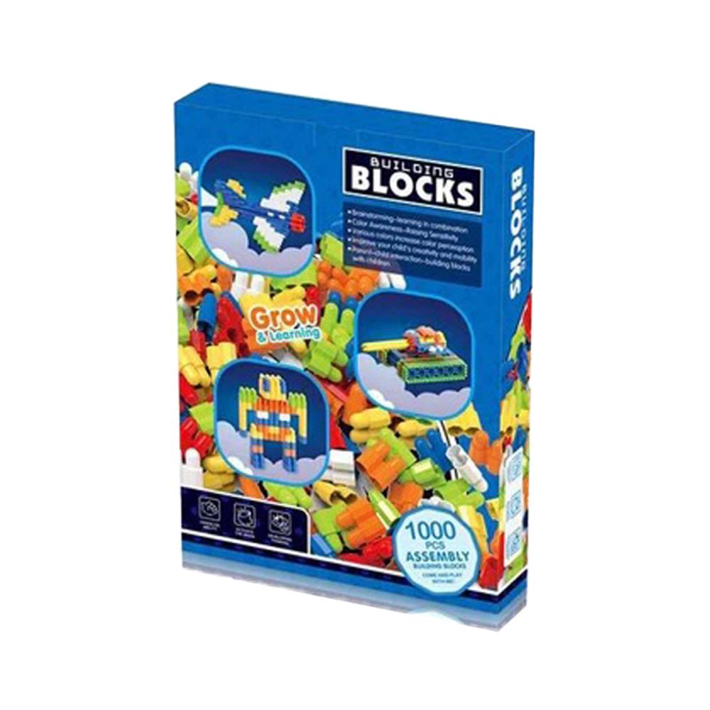 صندوق مكعبات بناء ملونة من "Grow Building Blocks" يحتوي على 1000 قطعة للتجميع.