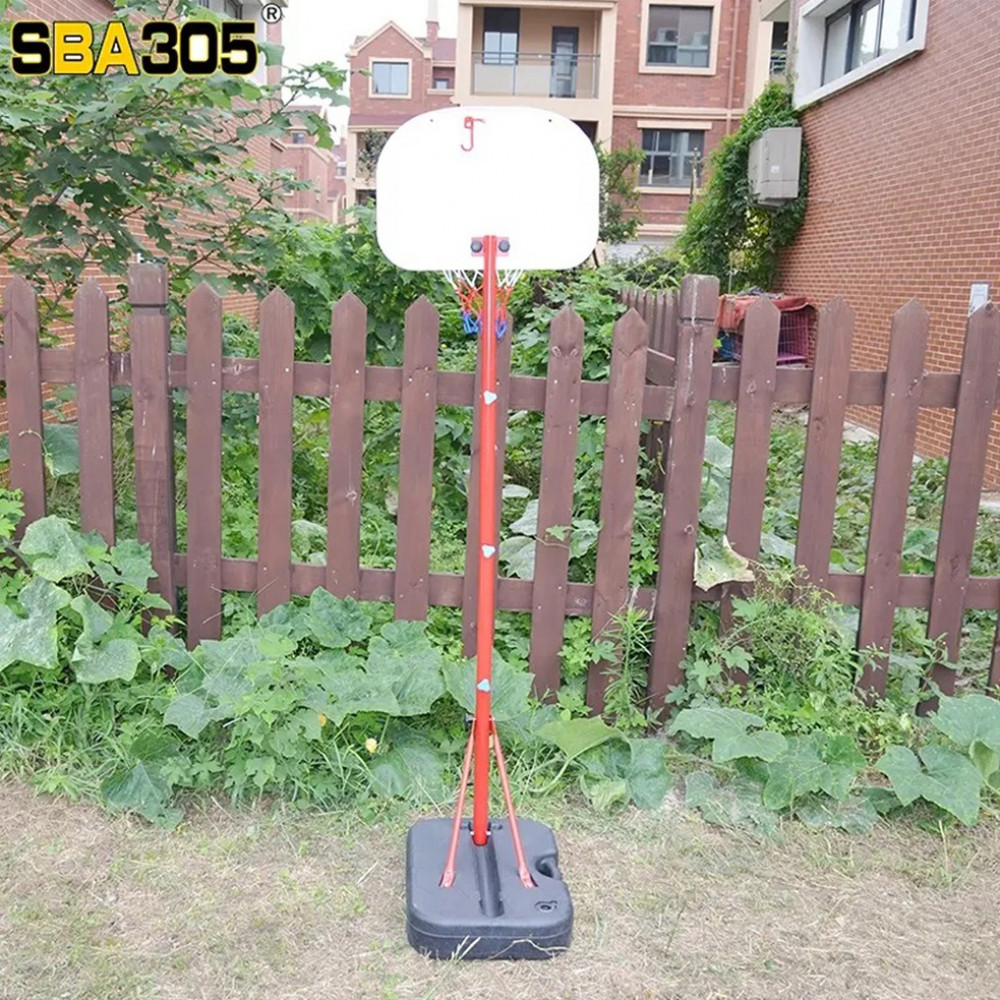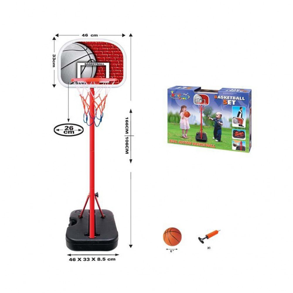 عمود كرة سلة مع القاعدة وكرة سلة صغيرة .