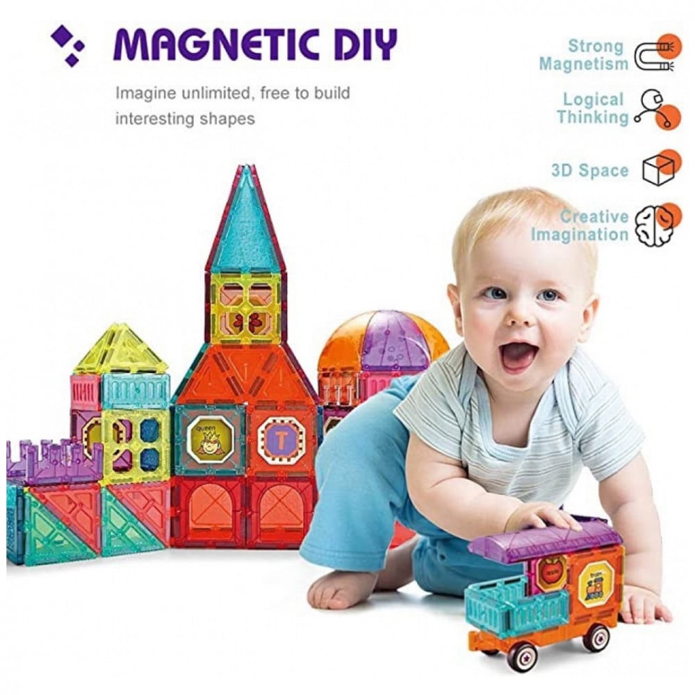 تساعد أطفالك على استخدام خيالهم ويطورون مهاراتهم الحركية والابداعية. مصنوعة من البلاستيك القوي والمتين، هذه المكعبات مغناطيسية ويمكن استخدامها لبناء نماذج ثلاثية الأبعاد وقلاع ومنازل والمزيد. مع 111 قطعة في المجموعة، سيحظى أطفالك بالكثير من المرح في إنشاء جميع أنواع الهياكل. القطع آمنة للأطفال من سن 3 سنوات فما فوق، لذلك يمكن للجميع المشاركة في المرح الإبداعي!