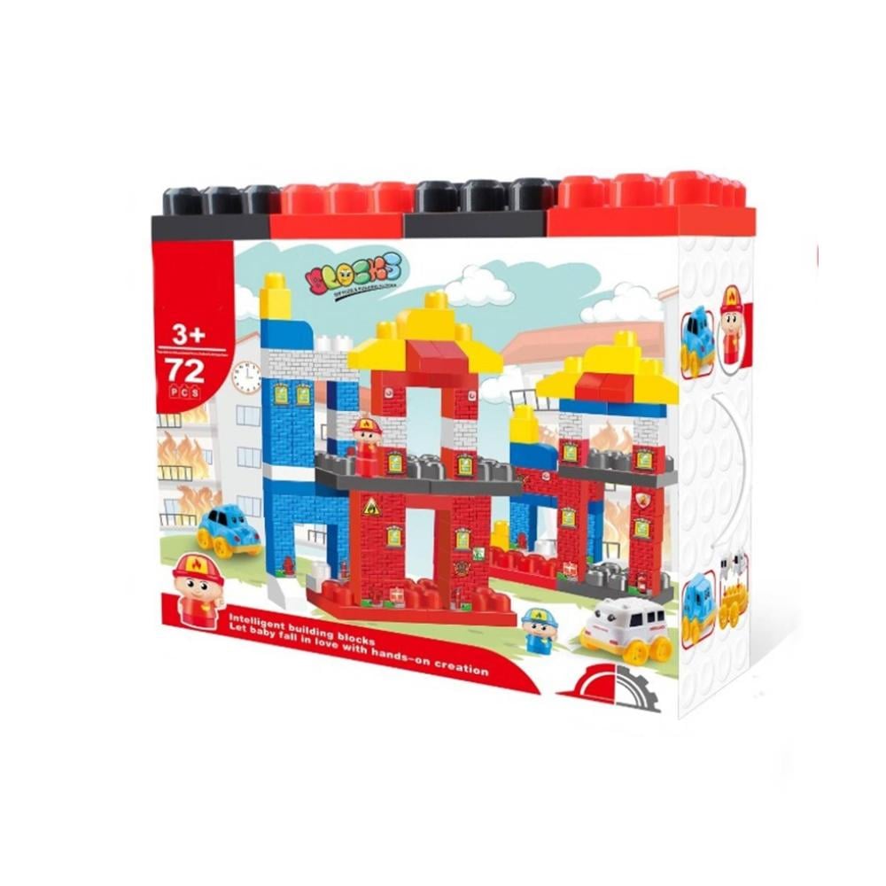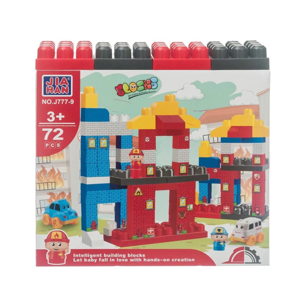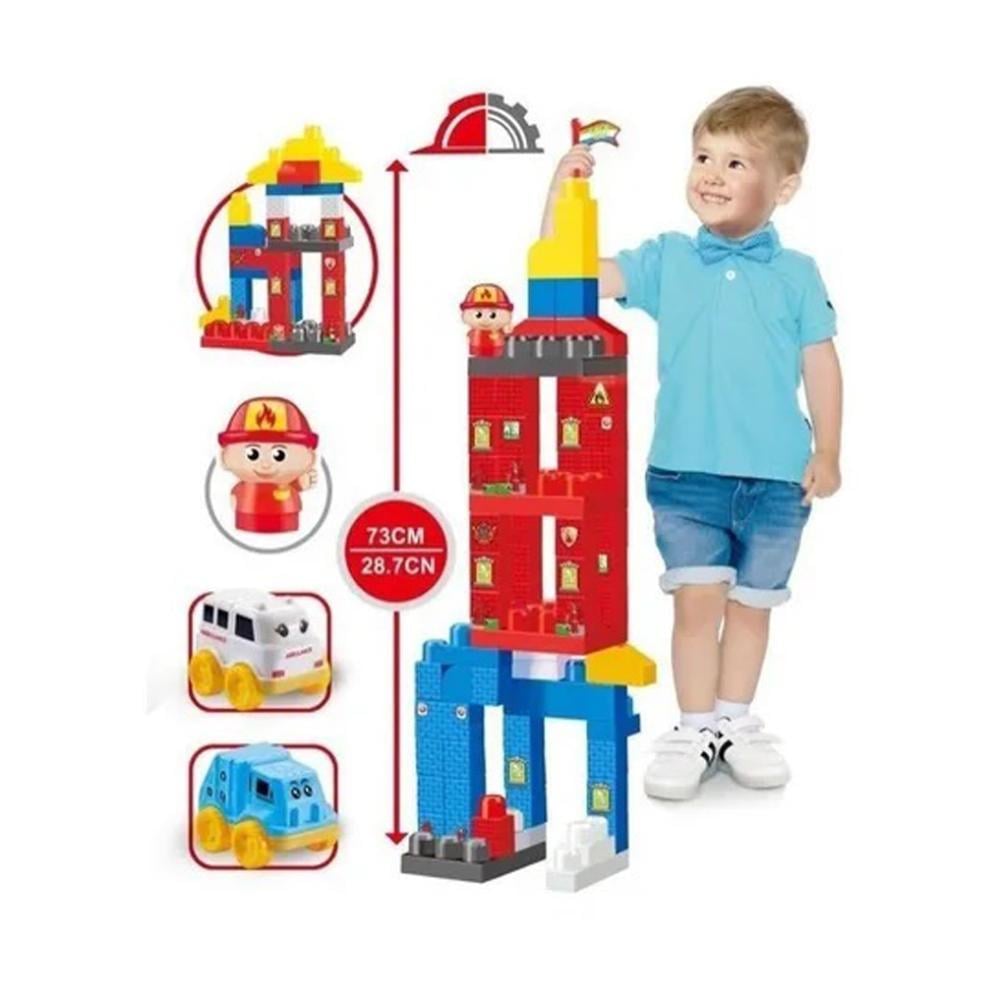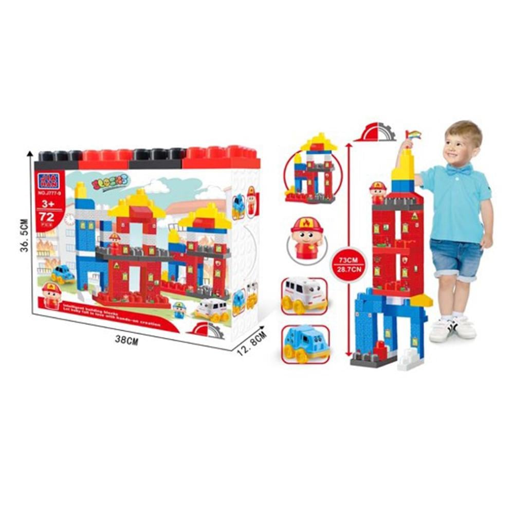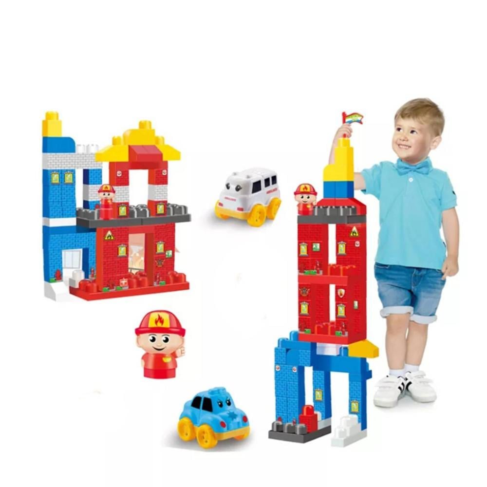 ألعاب مكعبات بناء كبيرة الحجم تحتوي على سيارات وشخصيات للأطفال.