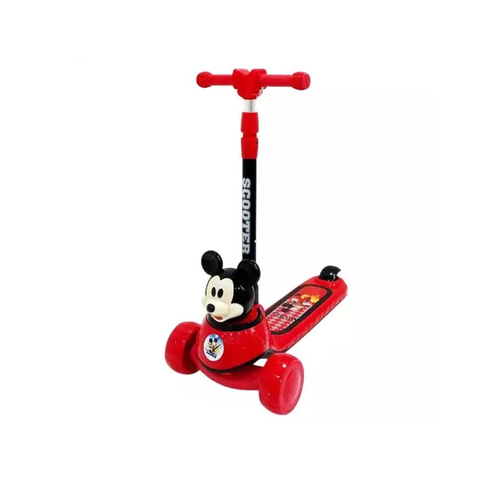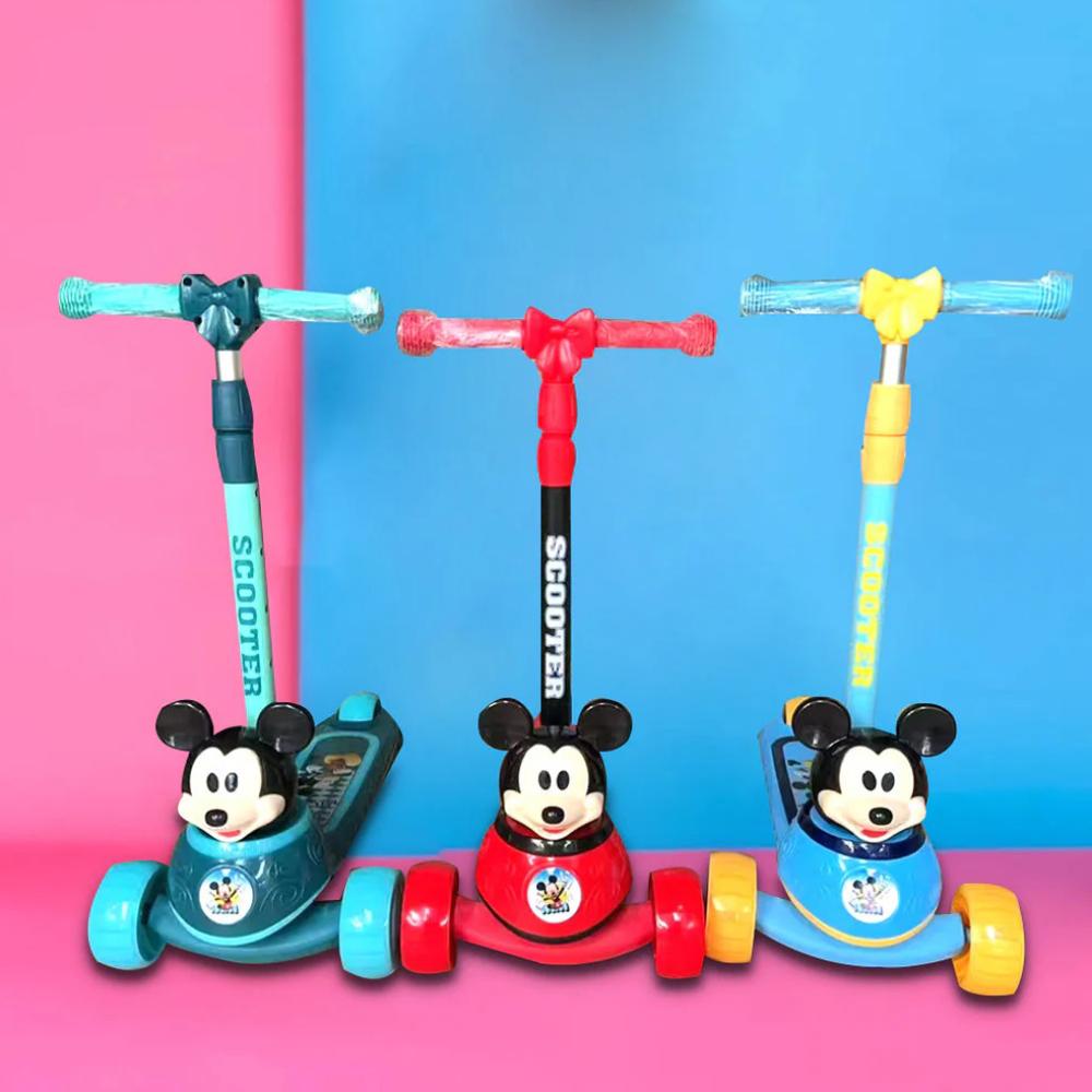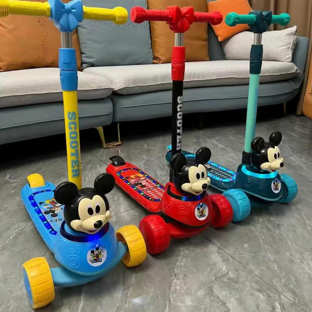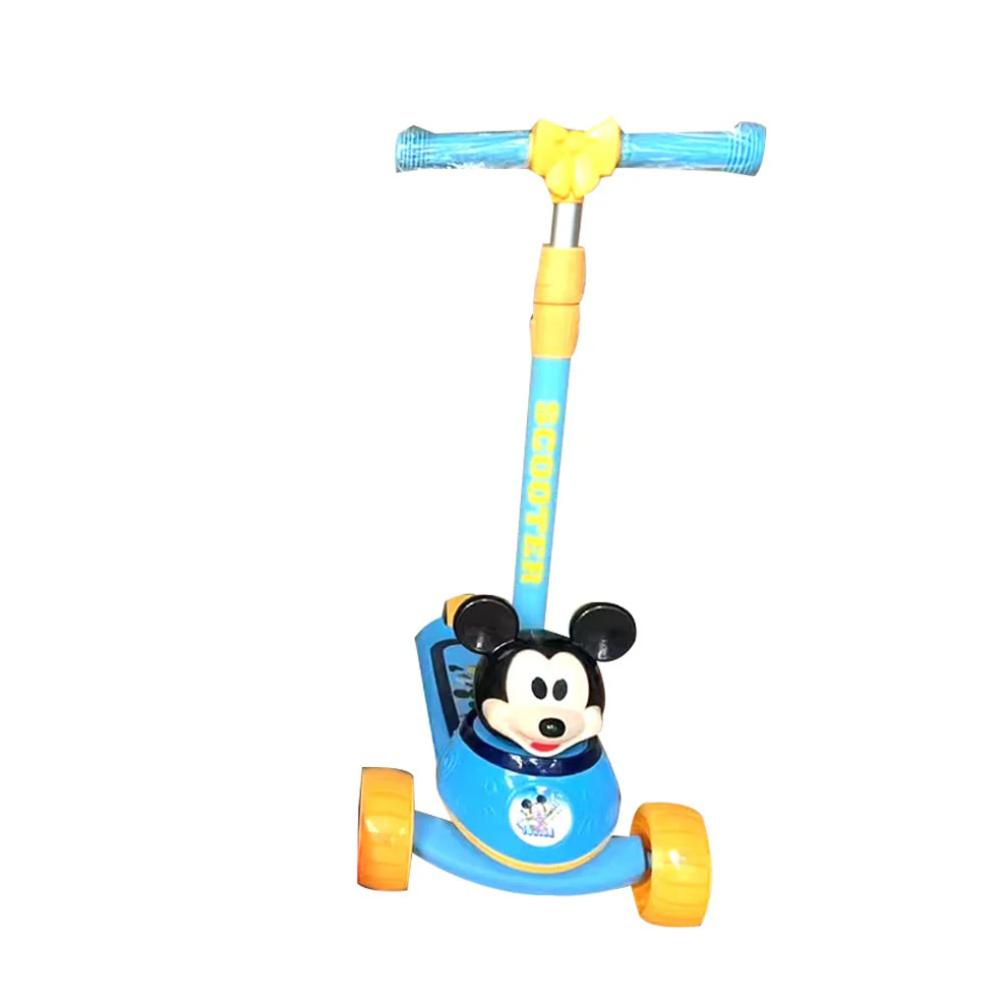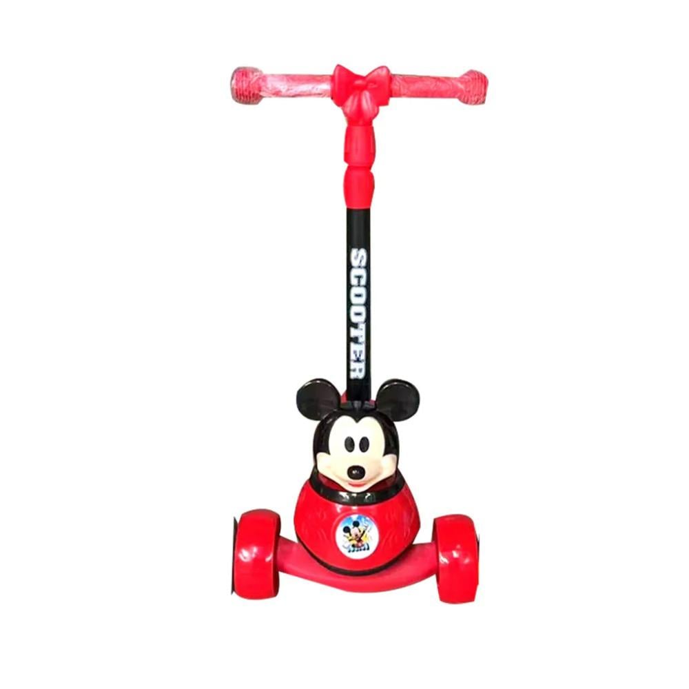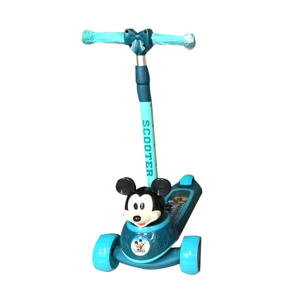 سكوتر ميكي ثلاثي العجلات للأطفال، مصابيح LED على الساق وعجلات مضيئة، هيكل خفيف الوزن، مقود قابل لضبط الارتفاع، نظام إمالة للتوجيه، آلية طي سهلة، للأعمار من 3 سنوات فما فوق، JMCKY-3KIK