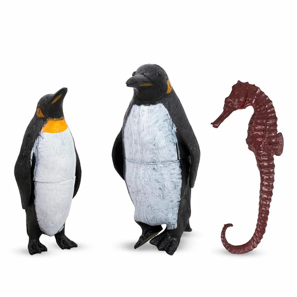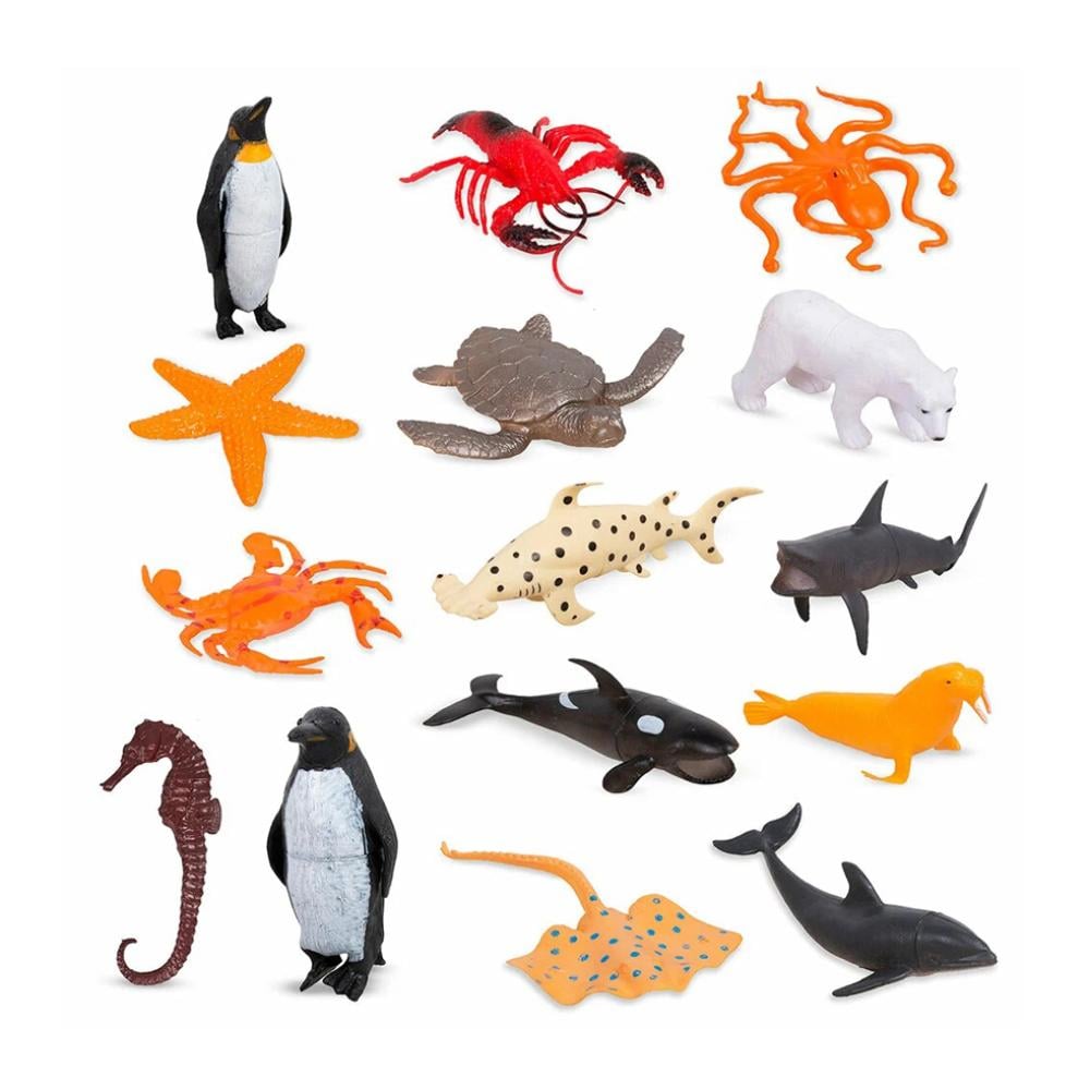 بما في ذلك البطريق ، والراي اللساع ، ونجم البحر ، وسلحفاة ، ودب قطبي، وأخطبوط ، وجراد البحر ، وسلطعون ، وفقمة