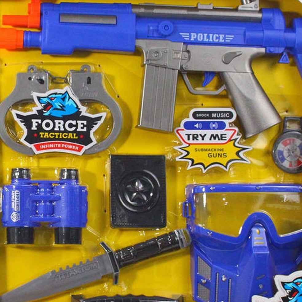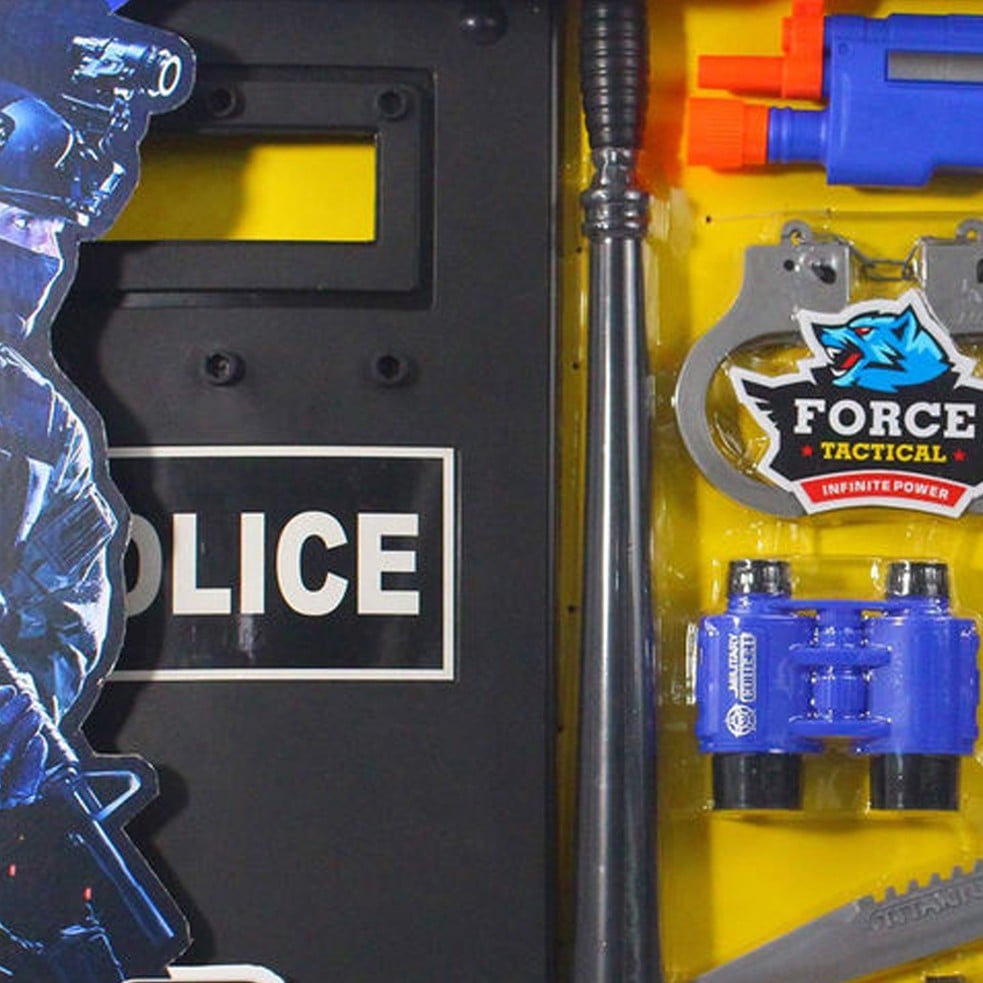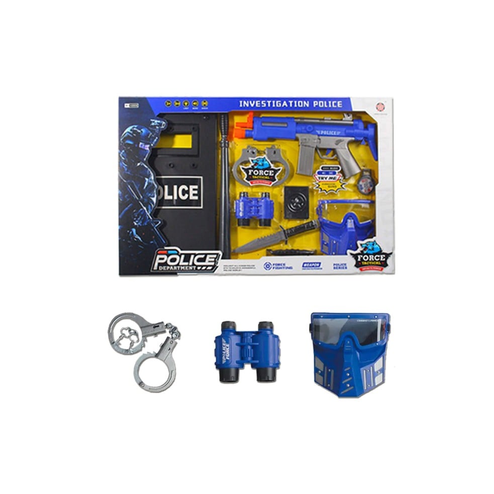 الشرطة على سترة للأطفال وأصفاد وجهاز