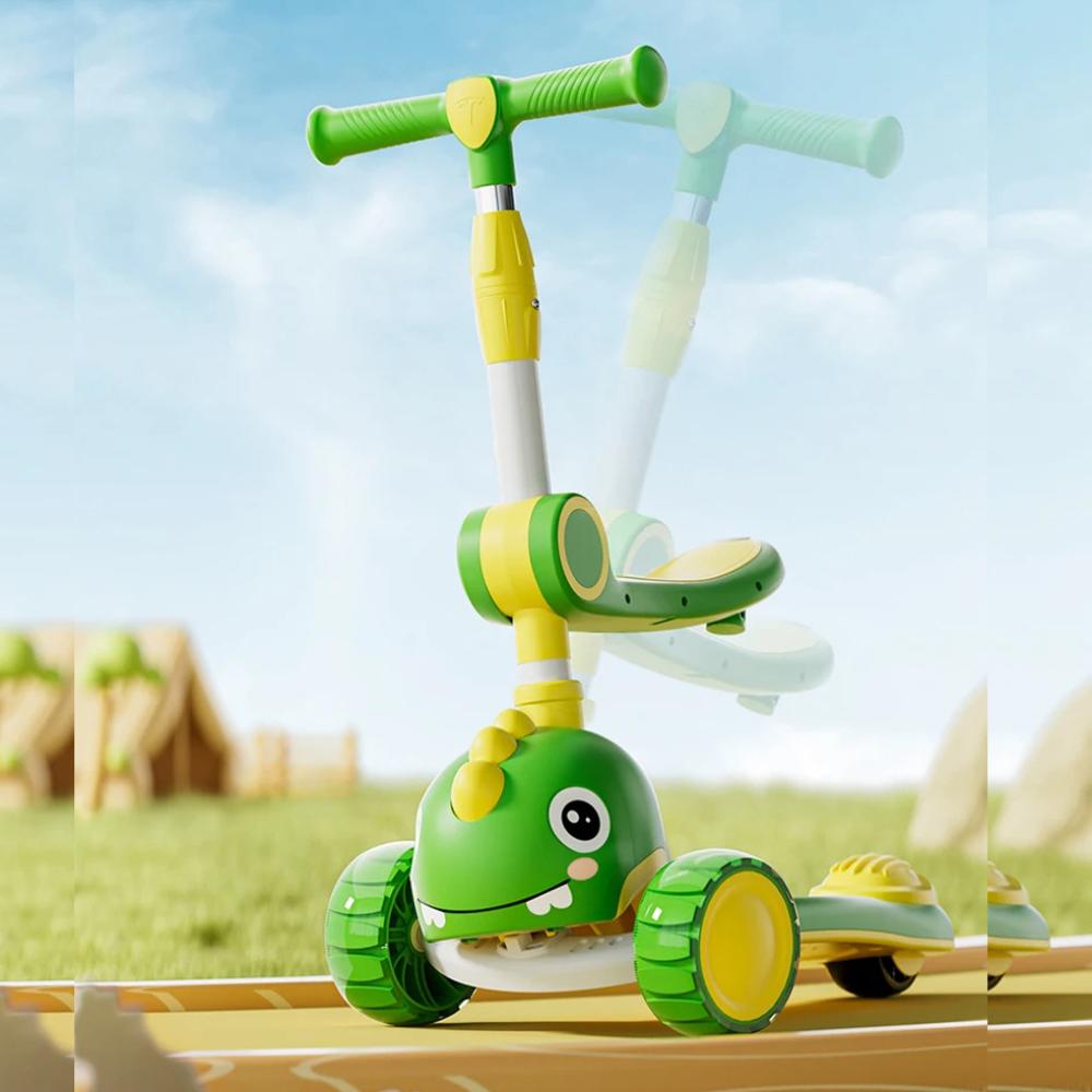 - سكوتر ثلاثي العجلات: يوفر التصميم ثلاثي العجلات الثبات والتوازن، مما يسهل على الركاب الصغار المناورة.