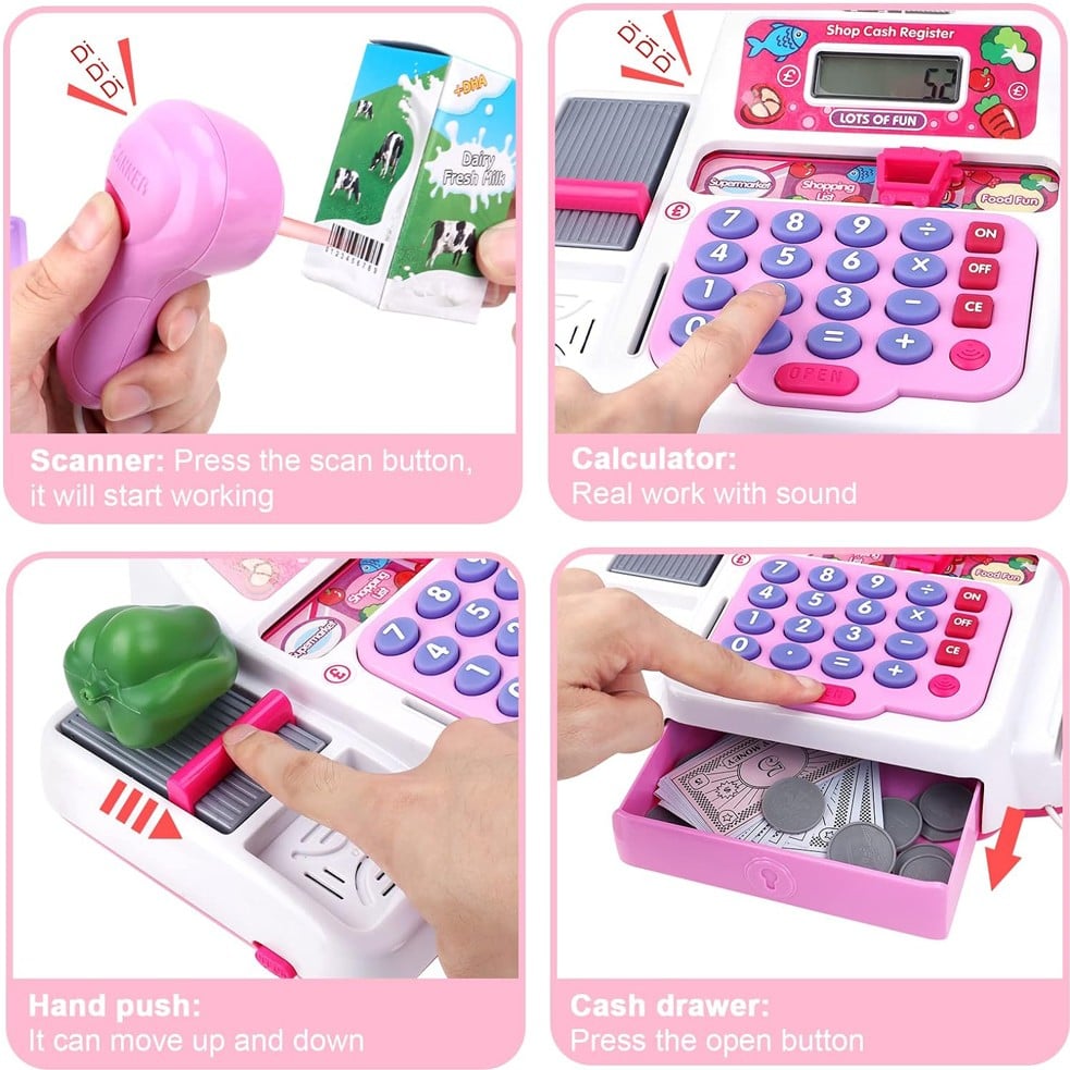 ماكينة تسجيل النقود للأطفال مع ماسح ضوئي وصوت: اضغط